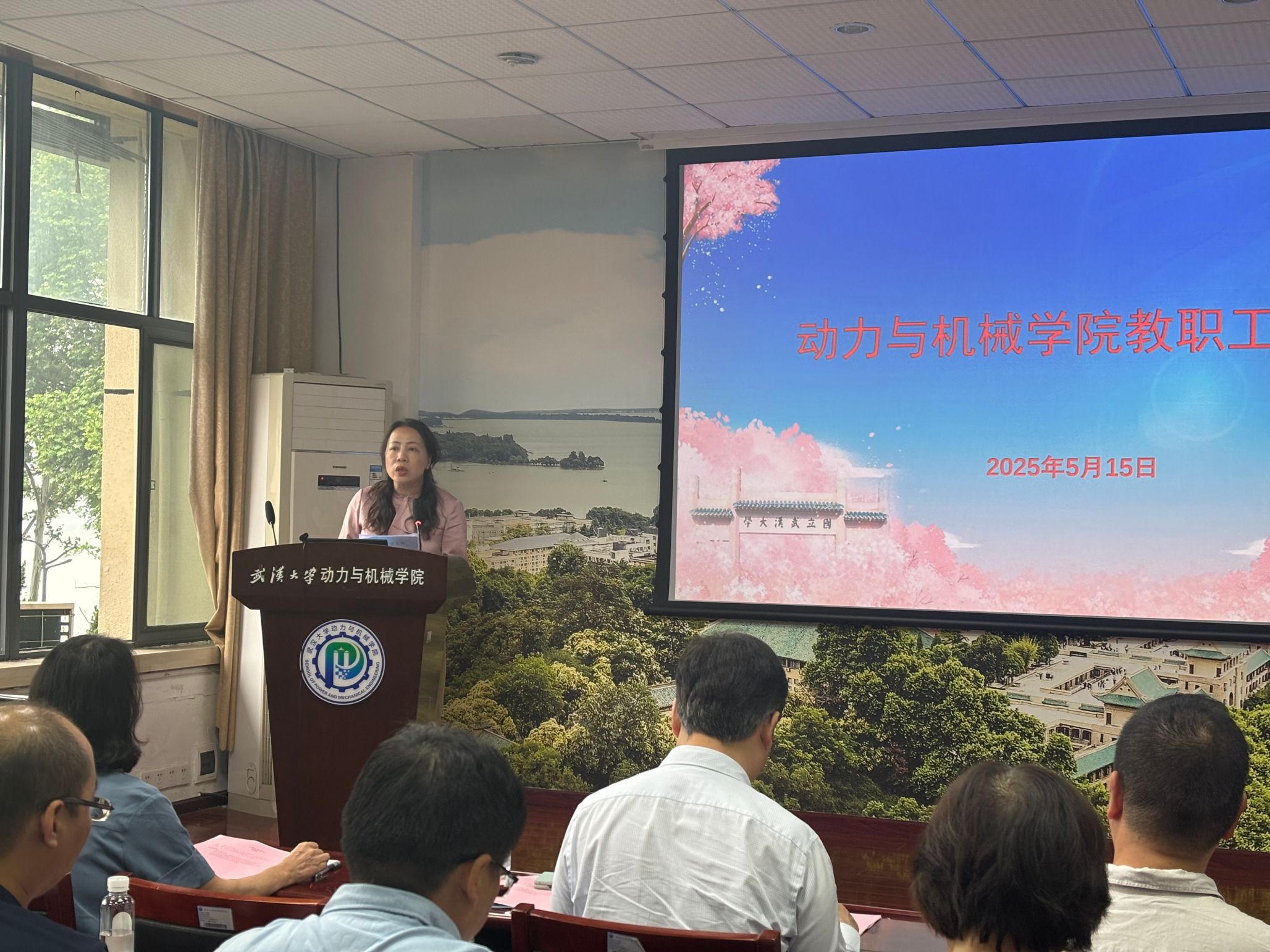 在报告厅召开全体教职工大会,宣布干部任职。校党委常务副书记沈壮海、党委常委、组织部部长姜星莉出席大会,院党委书记孙萍主持会议。