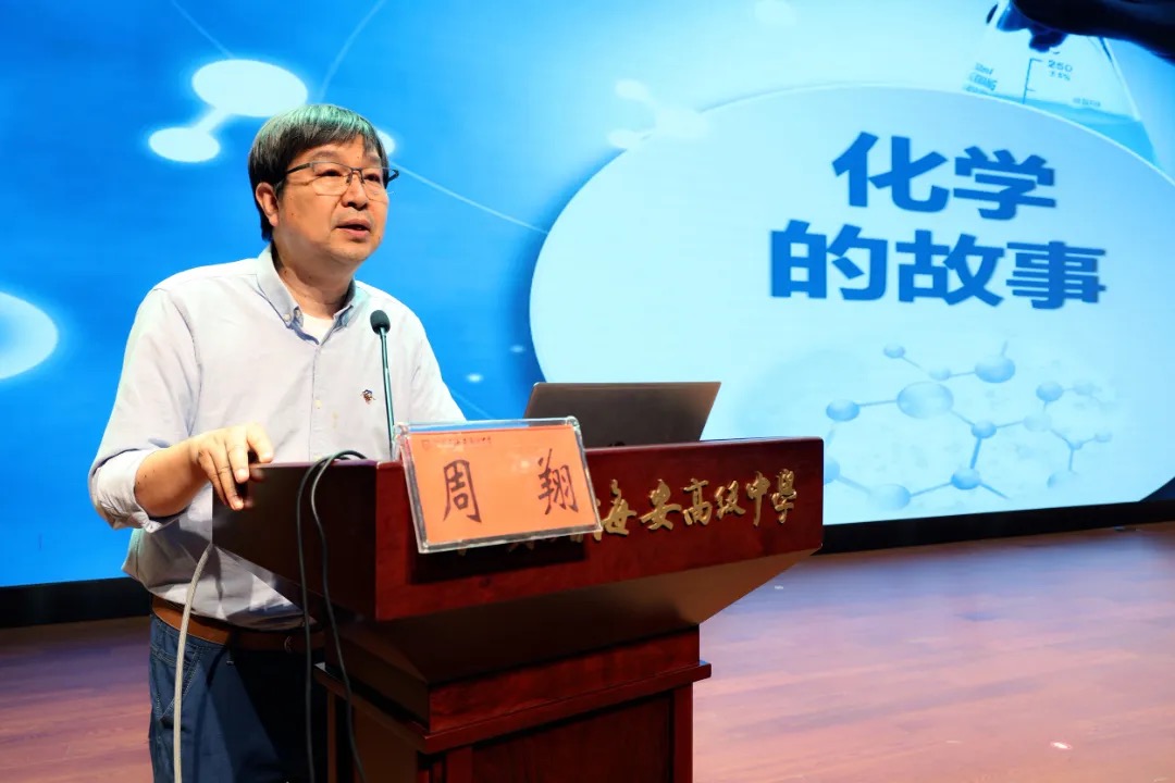 5月28日下午,周翔院士为江苏省海安高级中学师生作了题为《化学的故事》的科普讲座,以生动故事串联科学史实,激发学生科学兴趣,并勉励学子永葆好奇、勇毅前行。