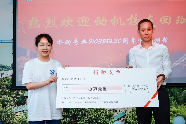 吴华校友代表全班向学院赠送捐赠支票,郭江代表学院向其颁发捐赠证书。这笔承载着青春记忆的馈赠,将成为新一代学子科研路上的星火。