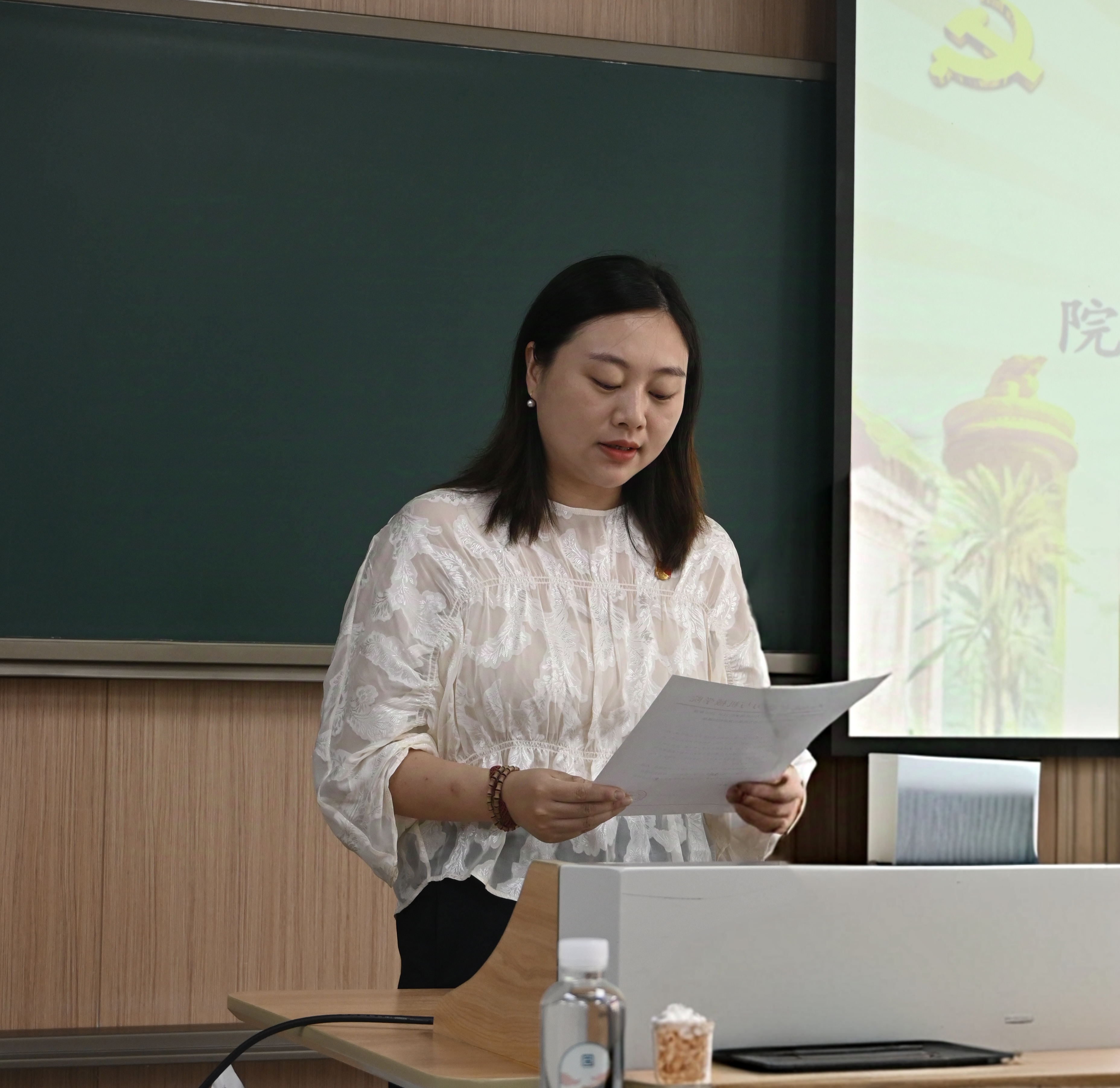 表彰环节后,严柠作为受表彰先进基层党组织代表发言,分享了从事支部工作的经验,深入探讨了将党建工作与专业特色有机结合的成效,并提出举办党日活动应精准规划、提升效率,结合专业、强化内驱。优秀共产党员代表林可和吕菲从不同角度交流了个人在学院的成长和对党支部工作的认识,并表示会继续在学术研究中追求真理,在服务群众中践行使命,让党员身份在奋斗中熠熠生辉。