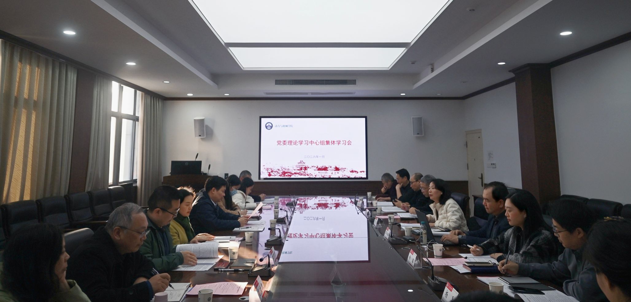 (通讯员:胡军)1月13日下午,学院党委理论学习中心组集体学习会在动力系会议室召开。全体院领导、党委委员,各系(中心)党支部书记、系(中心)主任,组织员、辅导员参加学习,校党委组织部副部长刘义胜、组织部党建办干部陈晓阳、科学发展研究院综合办职员沈晓秀列席旁听。学院党委书记孙萍主持会议。