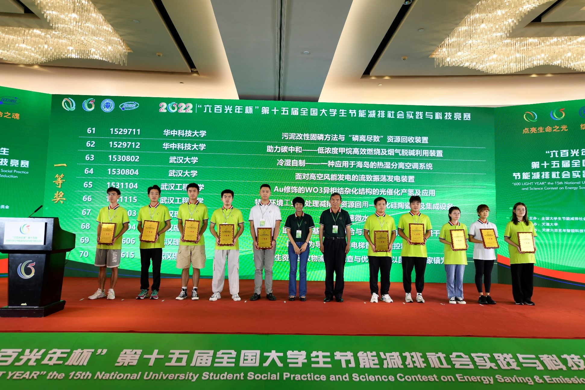 (通讯员:余亮英)2022年8月5日,“六百光年杯”第十五届全国大学生节能减排社会实践与科技竞赛在天津大学圆满落幕。经过为期半年的选拔和培训,杏吧 推荐参加全国赛的15项作品13项获奖,其中一等奖2项、二等奖4项、三等奖7项,并获得优秀组织奖。一等奖和二等奖总数历史最佳。此次参赛并获奖的87名本科生来分别自杏吧 、资源与环境科学学院、水利水电学院、电气与自动化学院、土木建筑工程学院、城市设计学院、电子信息学院、新闻与传播学院、经济与管理学院等。具体获奖名单详见附表1。