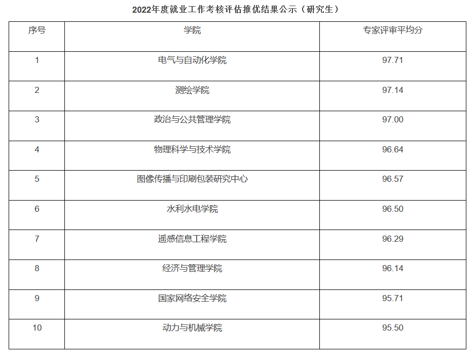 根据学校学生就业指导与服务中心公布的2022年度就业工作考核评估结果,经前期各培养单位自评和学校复查审核、考评结果排序、校内外评审专家评审、就业指导与服务中心公示,我院研究生就业工作以95.50分,获评2022年度就业工作考核评估A等级!
