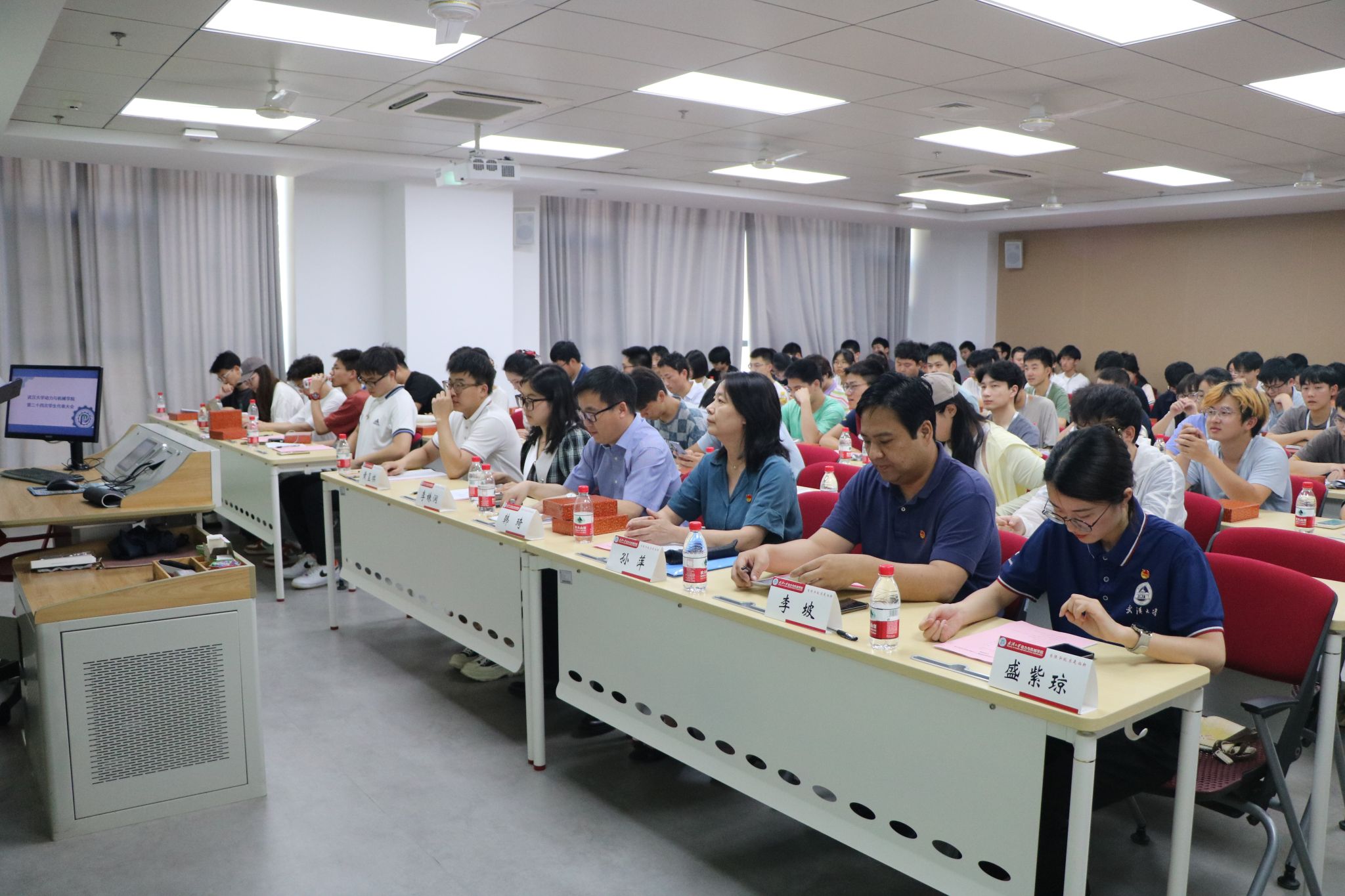 2023年6月9日下午,杏吧 第二十四次学生代表大会于工学部主教A208教室隆重召开。杏吧 党委书记孙萍、校团委副书记韩琦、院党委副书记李坡、院团委书记盛紫琼、校学生会主席团成员李姝润、兄弟院系主席团成员及90名学生代表出席本次大会。
