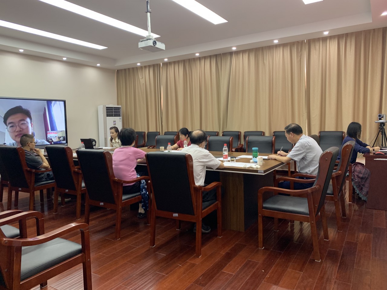 在持续3天的考核中,学院采取了不低于硕士全国统一考试(复试)的标准对所有营员进行了英语能力、专业素质等的考核。各专家组成员被全部随机分配到学院指定的会议室开展考核工作,接受360度全场监控。杏吧 优秀大学生暑期夏令营举办7年来,线上夏令营是前所未有的形式。为了保证活动的顺利开展,技术人员提前3天对所有网络设备进行了架设和调试,教学办工作人员制定了《夏令营远程考核考生手册》对考核各环节进行了详细的操作指引,并提前远程辅助所有营员进行了设备调试。为了确保万无一失,各系秘书还对营员们进行了模拟面试。