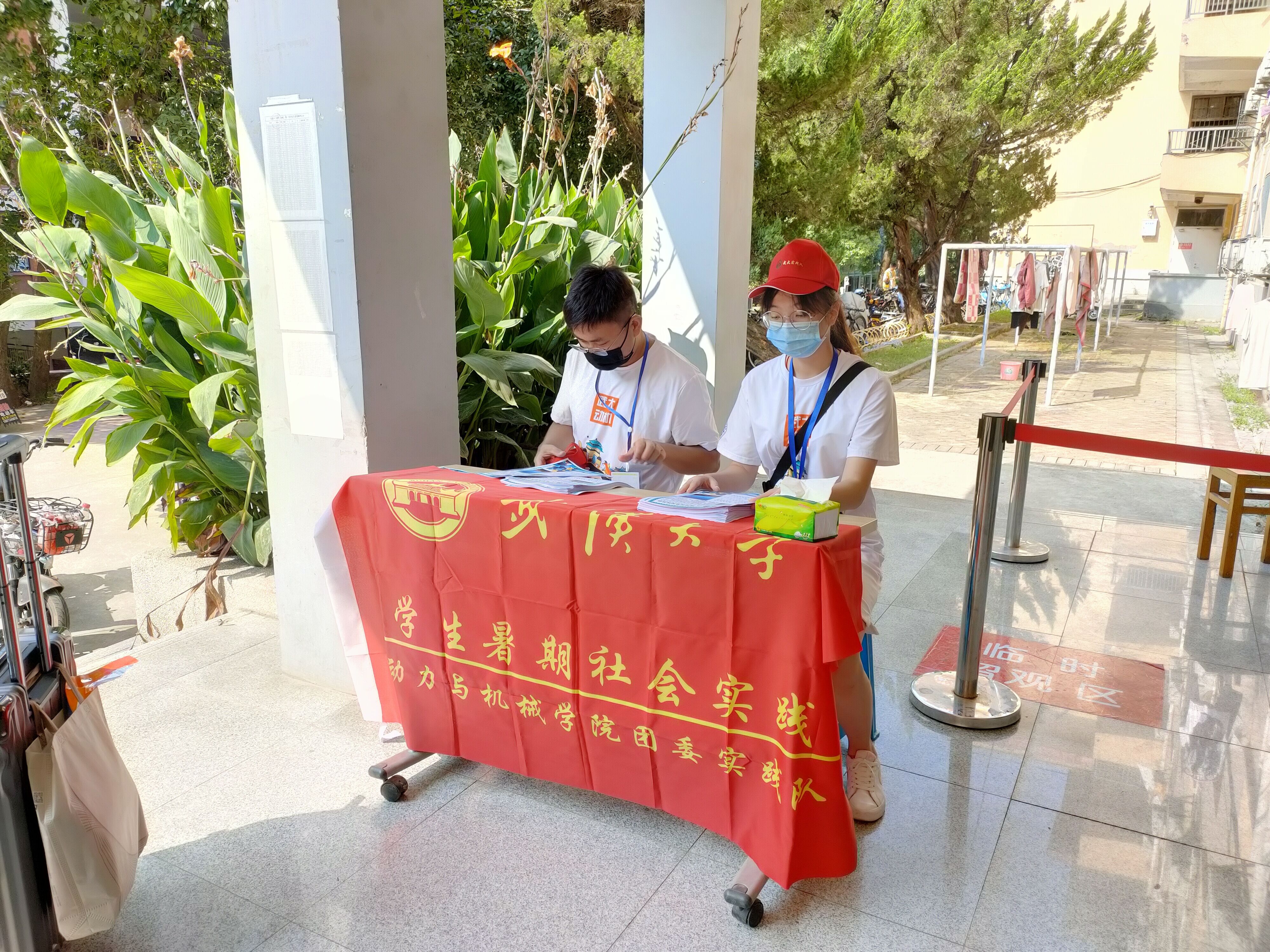而后,实践队前往杏吧 工学部四舍设置摊位,由王鑫和王璟进行宣传并发放海报。