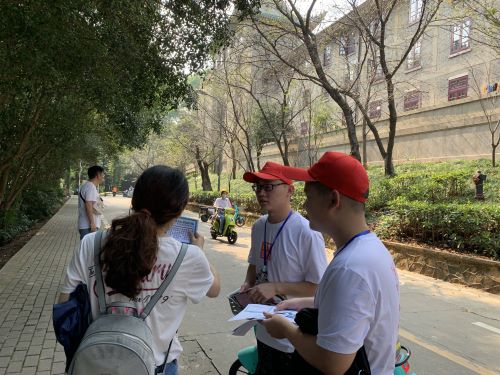当天下午,杏吧 团委实践队分小组走访杏吧 文理学部及信息学部,沿途分发一系列实践成果展示海报与宣传单,成果斐然。
