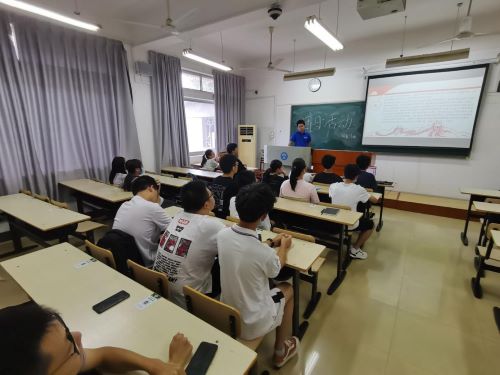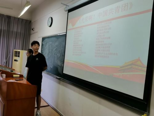 主持人概括性介绍了中国共产党成立一百周年的相关背景。接着全体同学齐唱团歌。同学们情绪高昂,热情歌唱,教室中回荡着青春的歌声。
