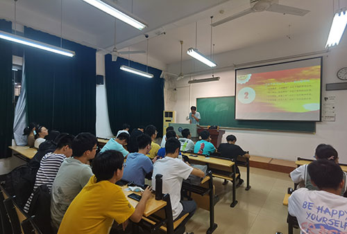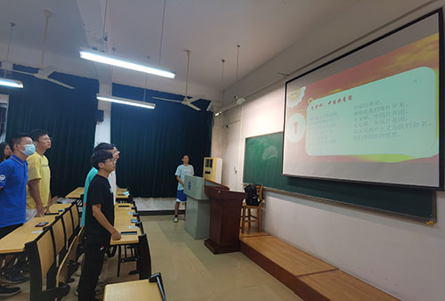 魏重九向同学们简要介绍了习近平总书记的“七一”讲话精神,分别为“坚持真理,坚守理想”“践行初心,担当使命”“不怕牺牲,英勇斗争”和“对党忠诚,不负人民”。这短短三十二字的的建党精神,蕴含着极为深刻的思想内涵,凝结着百年奋斗的伟大品格。这些宝贵的精神财富跨越时空,激励着一代又一代中国人民,历久弥新,深深融入了国家、民族、人民的血脉之中。在最后,魏重九同学号召同学们始终忠于信仰、不忘初心,以梦为马,不负韶华,积极呼应时代的号召,做新时代的有为青年。话毕,全场响起了热烈的掌声,同学们受到了深深的感染。