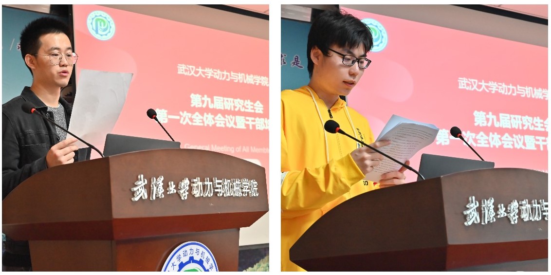 会议第一项由暴春航领学《关于推动高校学生会(研究生会)深化改革的若干意见》(以下简称《意见》),《意见》)旨在让研究生会能更好地服务青年学生成长成才;接着由主席团成员王文栋领学《学生会、研究生会干部自律公约》(以下简称《公约》,《公约》旨在让全体成员以更高的标准约束自我、维护组织形象以及履行工作职责。