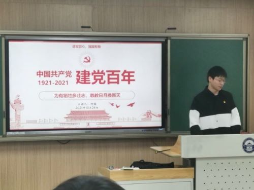 活动最后一项,我们邀请到青年讲师团成员何愉为我们带来建党百年主题宣讲。回首百年峥嵘岁月,中国共产党带领人民走向胜利,少不了独立自主、在各专业领域奠定基石的人才;再看今朝时代发展,中国共产党带领人民走向富强,少不了突破创新、在世界大变局中助国家掌握命脉的人才。人才兴则国家兴,人才强则国家强。何愉学长激励同学们,作为新时代的青年大学生,我们应明确使命担当,将理想付诸实践,学好本领,为国所用,成为在各行各业发光发热的国之栋梁。