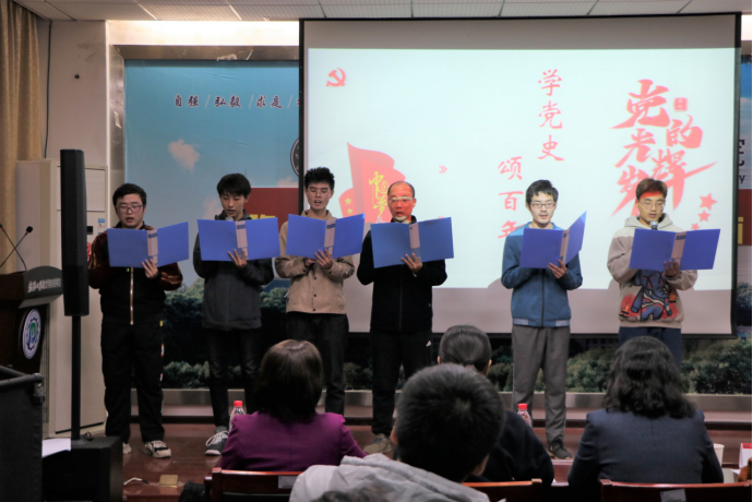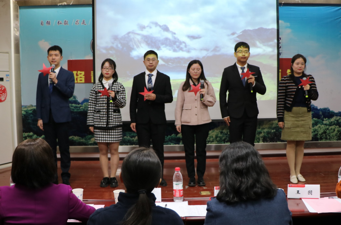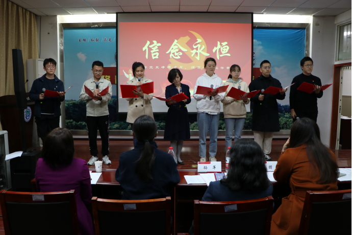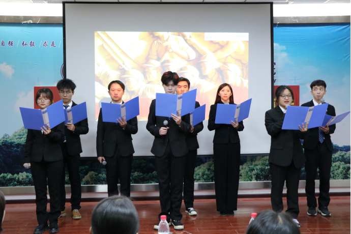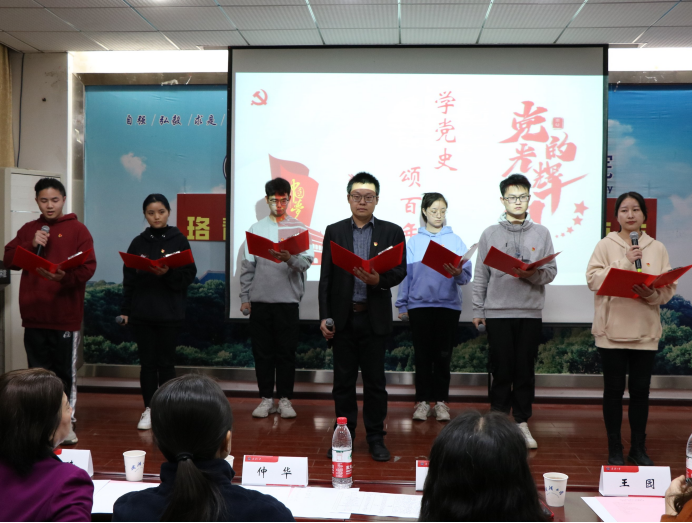 (文字记者:王嘉 图片记者:董心远)2021年11月14日,为隆重庆祝建党一百周年华诞,热情讴歌中国共产党领导中国革命和建设取得的伟大成就,同时加强师生交流,凝聚良好氛围,杏吧 举行了“学党史,颂百年”师生朗诵比赛。杏吧 学生工作部副部长仲华、校团委副书记王园、杏吧 党委书记孙萍、杏吧 党委副书记李琦、杏吧 党委副书记汪思明出席本次活动。本次比赛由牛卓和高芊主持。根据赛前抽签确定的顺序,各个队伍依次上场朗诵。