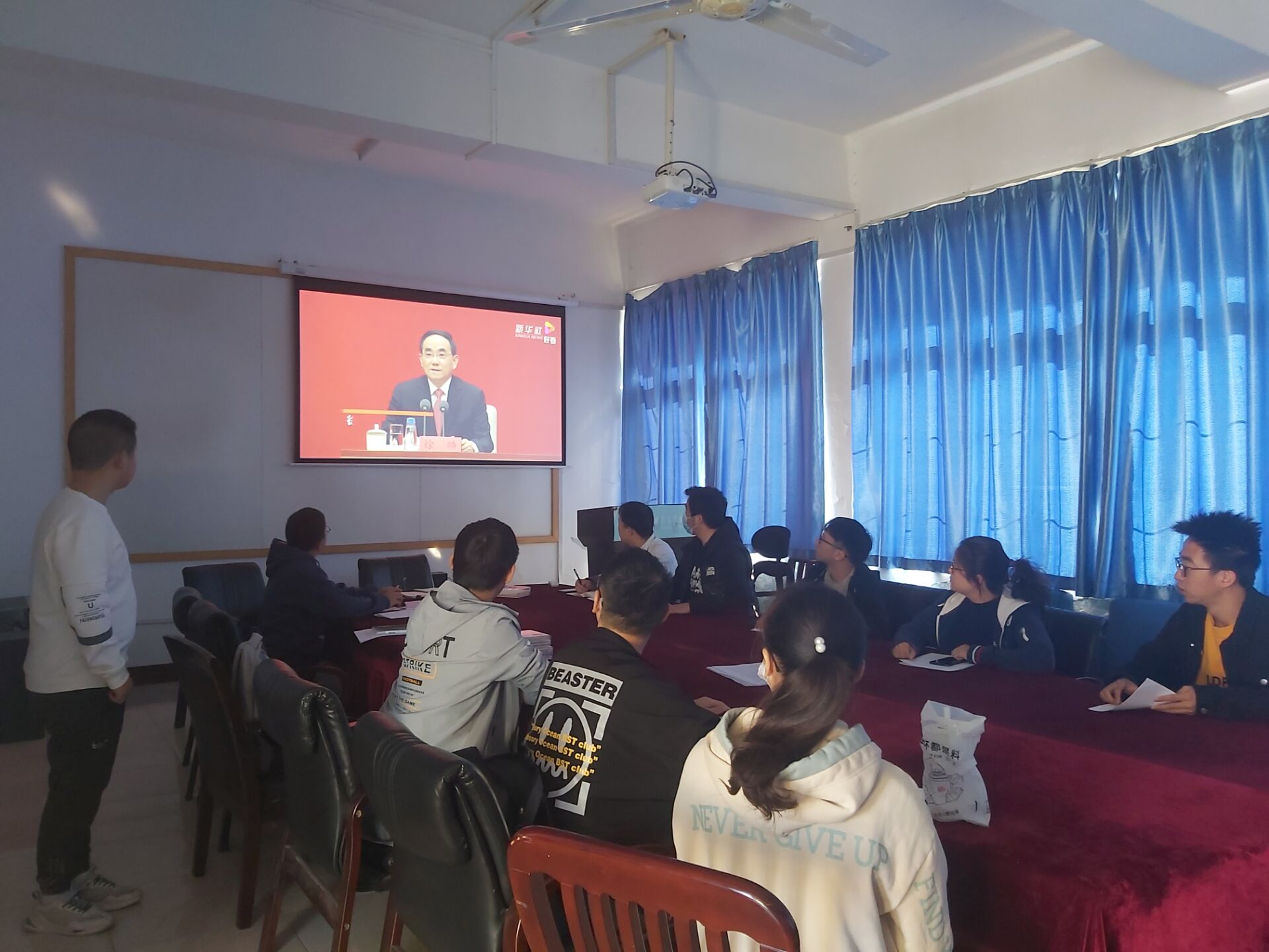 (文字:刘琦 图片:李灿明)为加强学生自身政治思想素质、深入学习十九届六中全会精神,杏吧 四大团学组织(团委、学生会、青年志愿者协会和社团指导中心)于2021年11月15日中午12时30分在五舍楼顶活动室开展团委扩大会议暨学习十九届六中全会精神活动。院团委书记黄佳倩子出席本次会议。