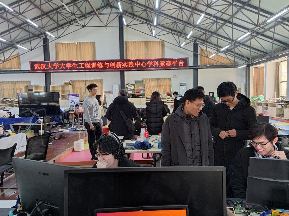 学工团队一行先来到机器人队备赛现场,参观了机器人队为春季比赛设计的装备,匡松询问了机器人队目前的筹备进度、技术难点与痛点,充分肯定了机器人队在2021年全国赛和国际赛中所付出的努力和收获的成果,也提出了对更高层次的技术进步、创新思维的希冀。