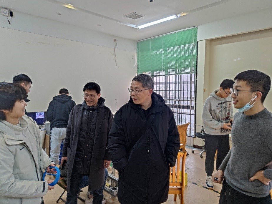 随后,学工团队又一同看望了在智能制造实验室留校的本科生,与不同机创小组交流研发思路、创意亮点、研究进展等。针对计划后期返乡的学生们,谢林桥强调了安全问题以及回家途中的防护措施。