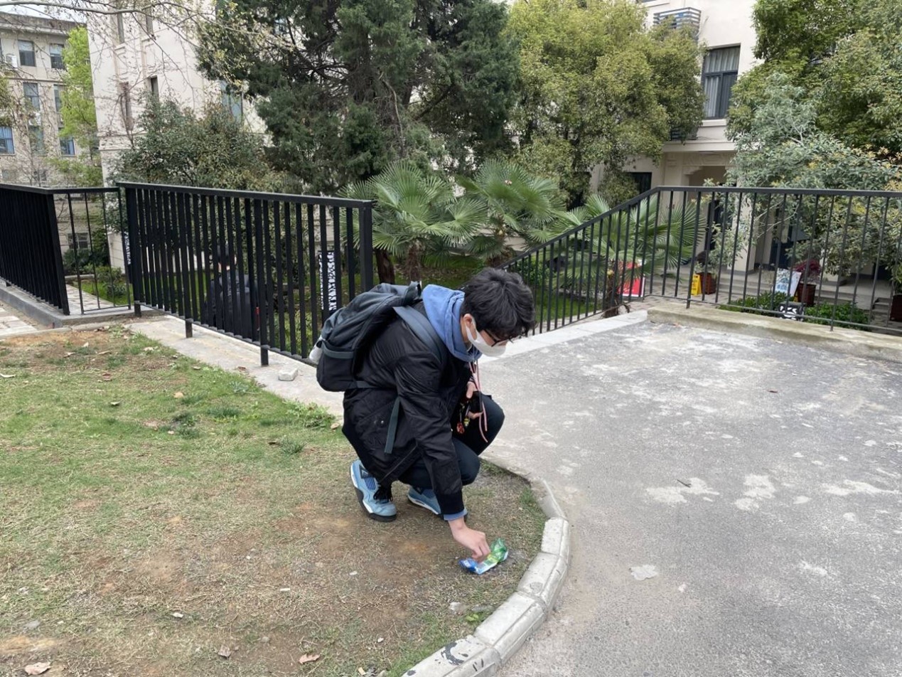 在室外环节,成员们分成小组采取不同的行动践行雷锋行动,有的同志主动去宿舍楼下扫树叶,有的同志则选择在校园内徒步环游,并且在途中帮助有需要的人,或是为陌生人之路,抑或是随手捡起路上的垃圾。