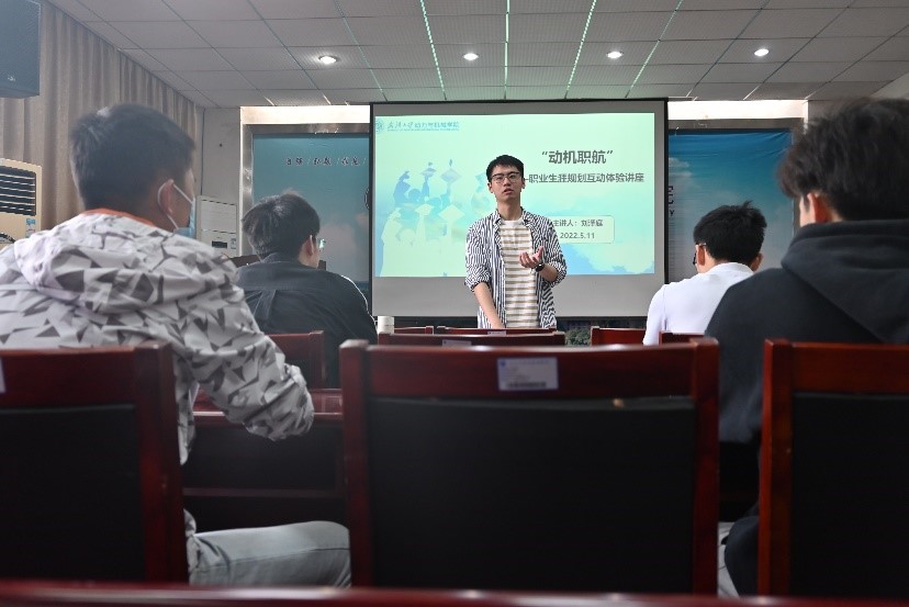 本网讯(通讯员:代朝镛 摄影:田志强 审核:刘泽庭)为进一步做好学院研究生就业工作,帮助研究生尽早完成职业规划、明确就业方向,杏吧 于5月11日上午在学院学术报告厅举办了“动机职航”----职业生涯规划互动体验讲座。本次讲座主讲人为院学工办副主任、研究生辅导员刘泽庭。为落实疫情防控要求,提高互动体验学习效果,本次讲座采用小班教学的模式,共有10位来自不同专业年级的研究生参加。