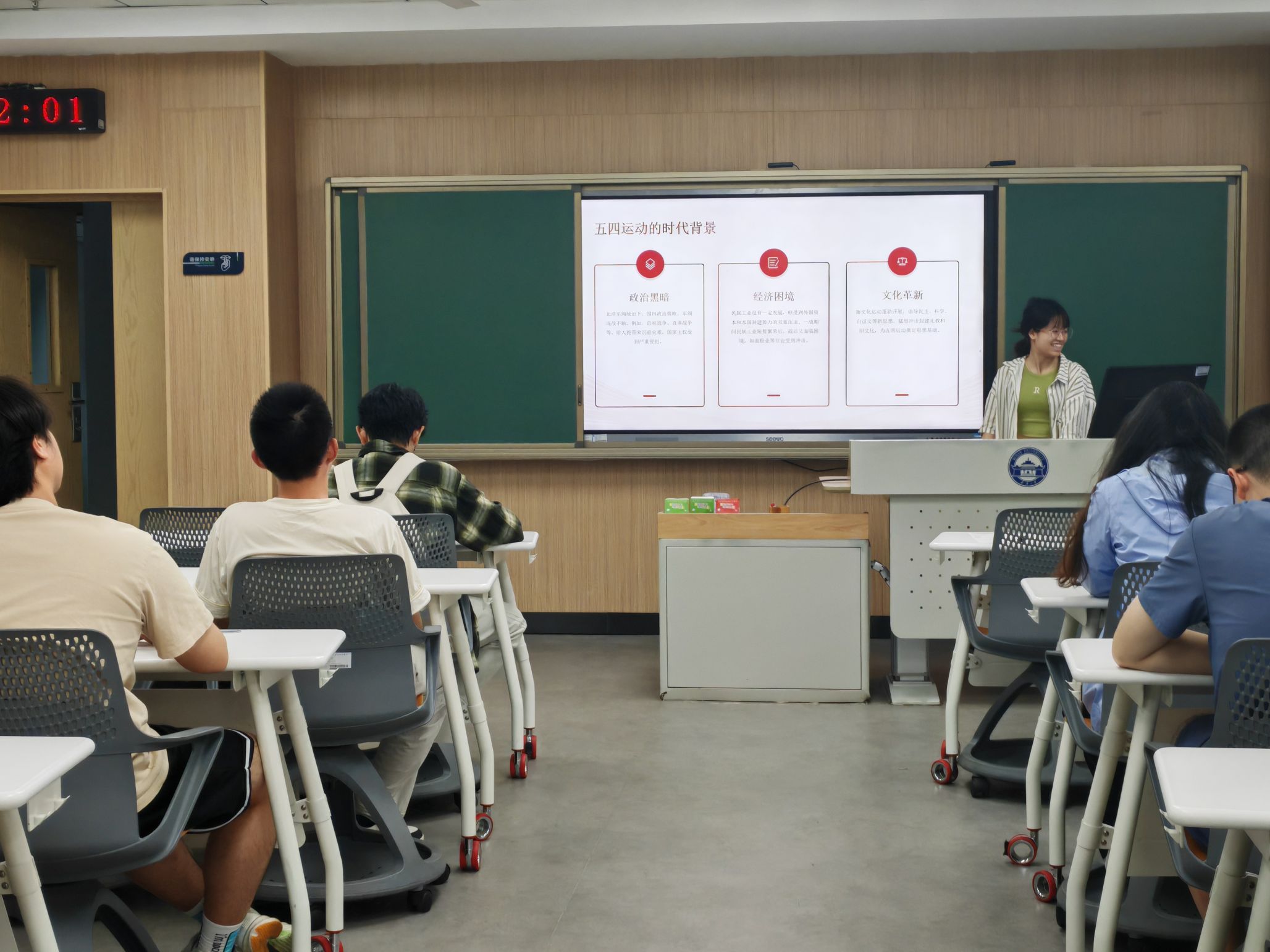活动伊始,团支书饶芝欣带领团员青年们系统回顾了五四运动的时代背景:北洋军阀的黑暗统治、民族工业的短暂发展、新文化运动的思想启蒙以及俄国十月革命的影响,这些因素相互交织,为五四运动的爆发奠定了坚实基础。巴黎和会外交失败的噩耗成为导火索,引发了全国各界的强烈愤慨。1919年5月4日,北京学生率先举行示威游行,随后运动迅速蔓延至全国,工人阶级的参与更使五四运动取得了重大胜利。