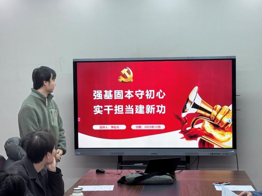 会上,机械系研究生第二党支部书记李耘凡围绕“强基固本守初心,实干担当建新功”主题开展理论学习,从守初心、强党性、勇担当、善作为四个方面系统阐述了新时代党员的责任与使命,进一步深化了与会人员对党员身份认同与政治责任的认知,切实增强了党性意识和宗旨意识。