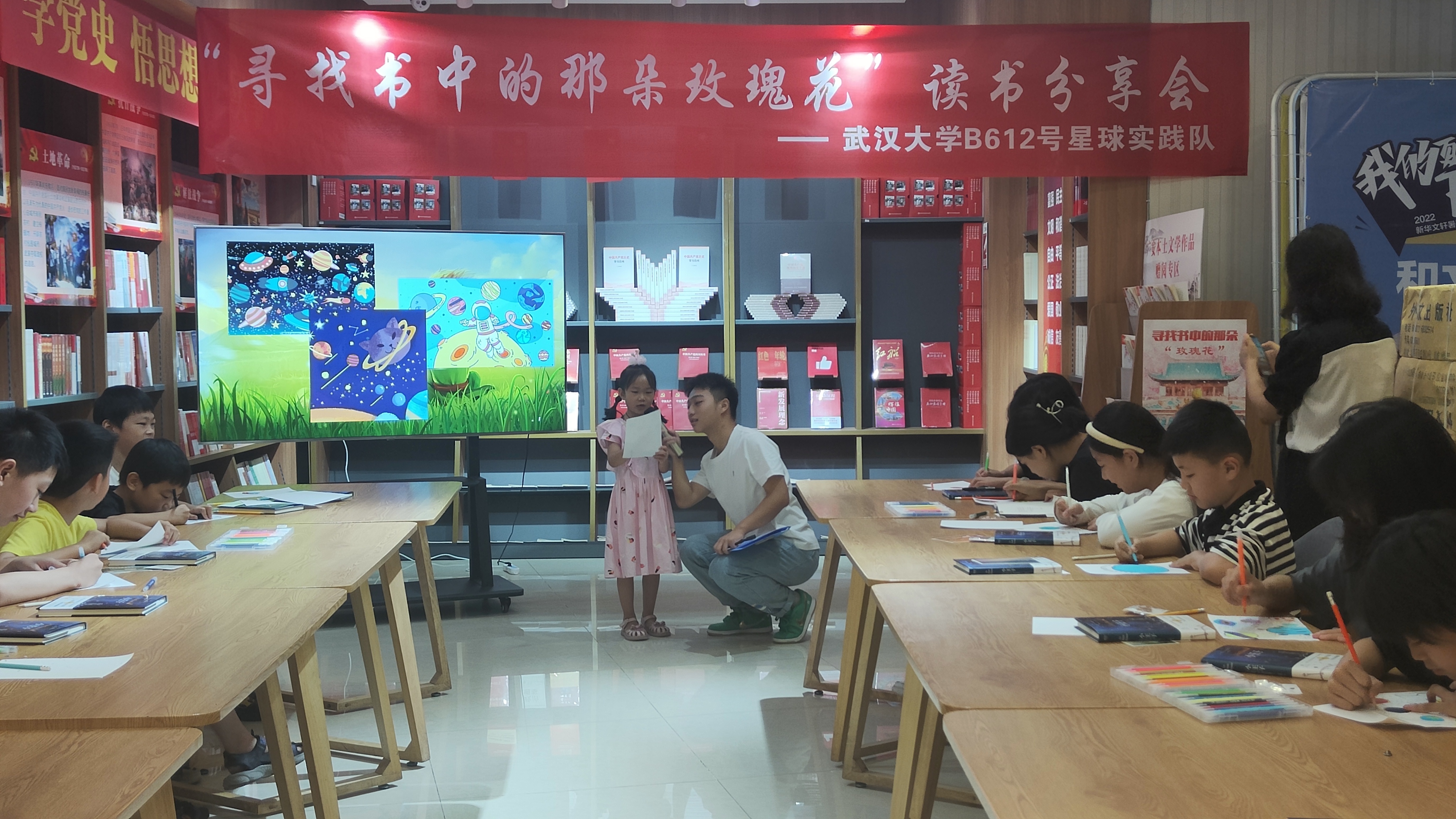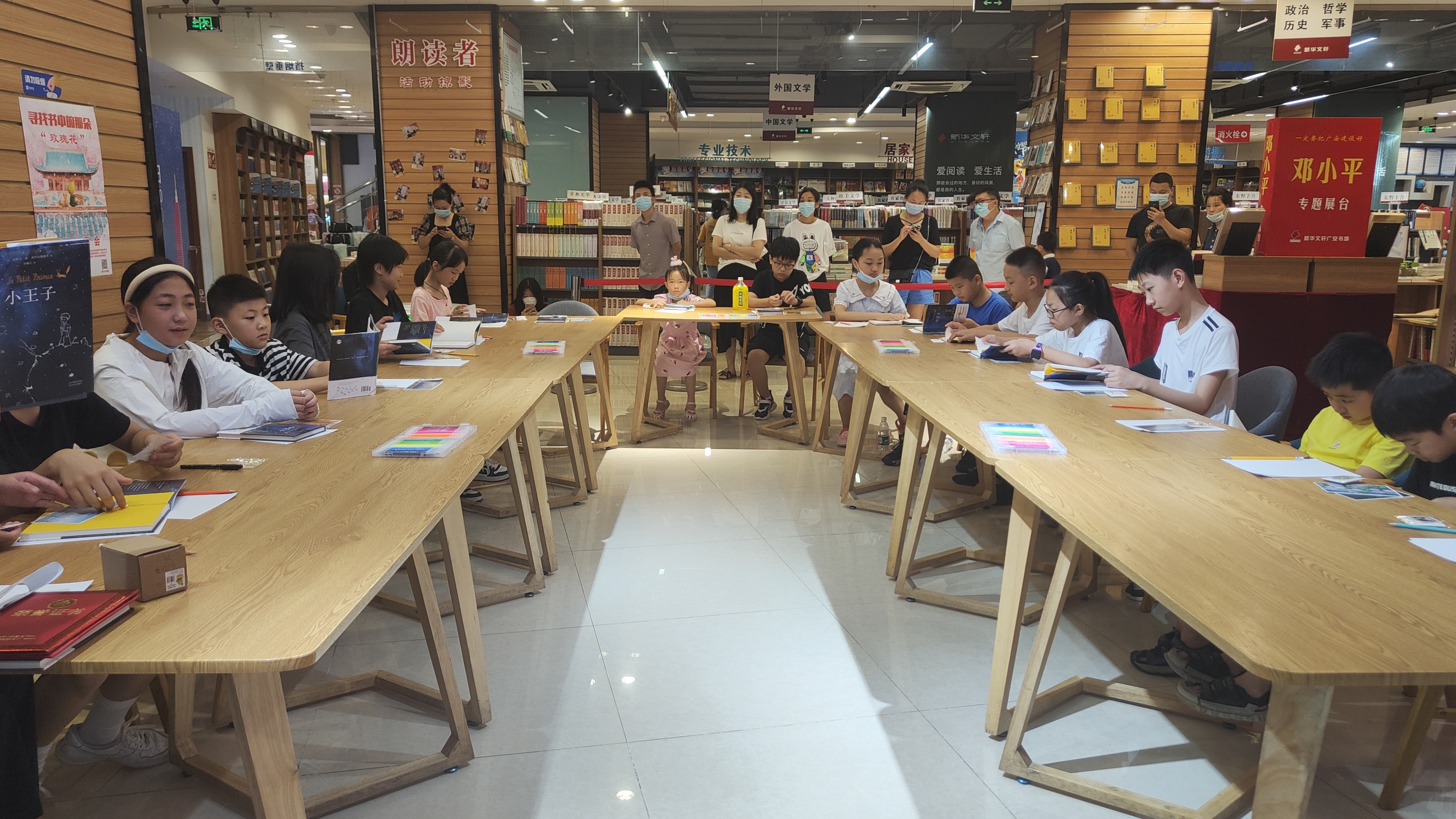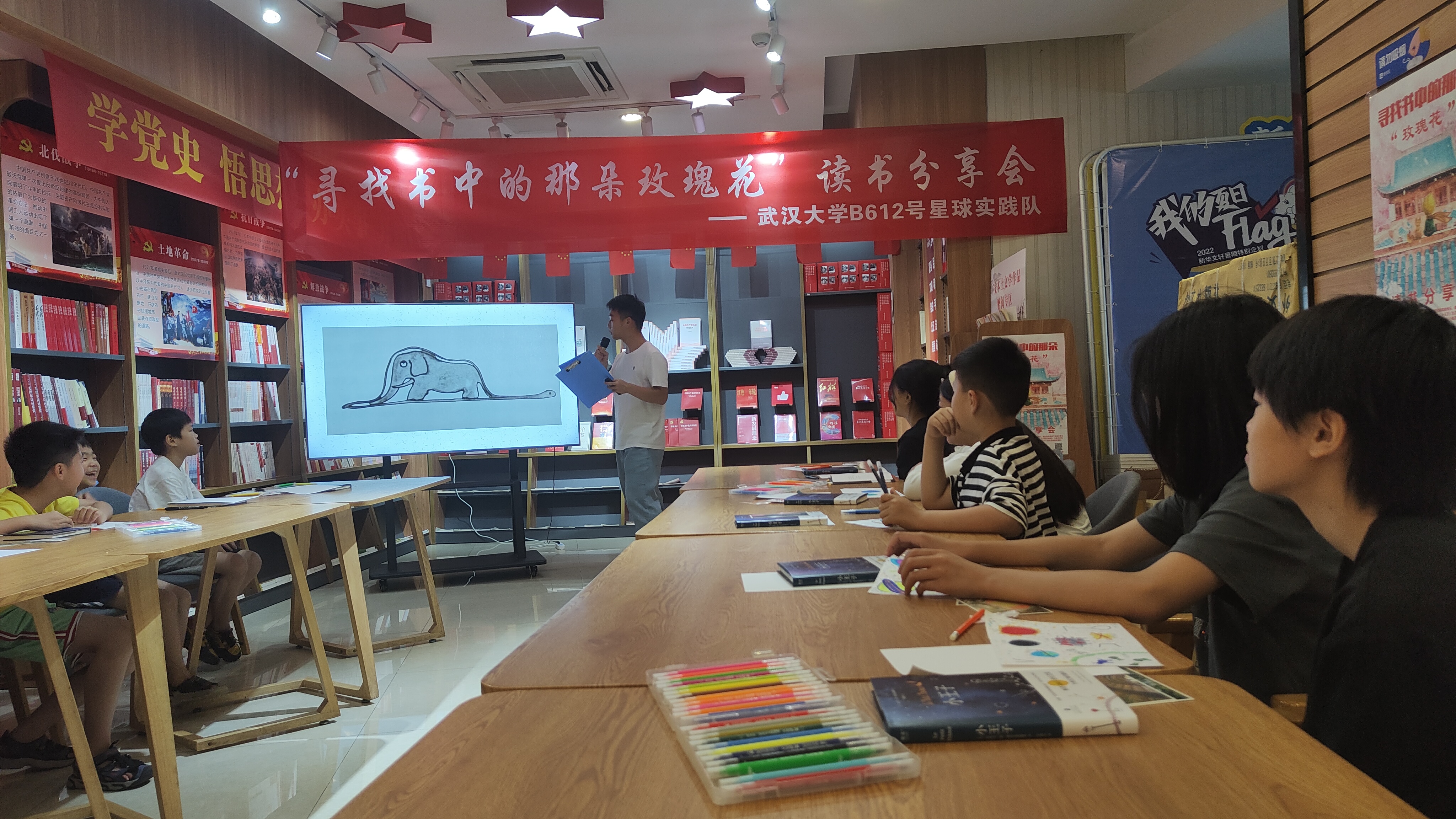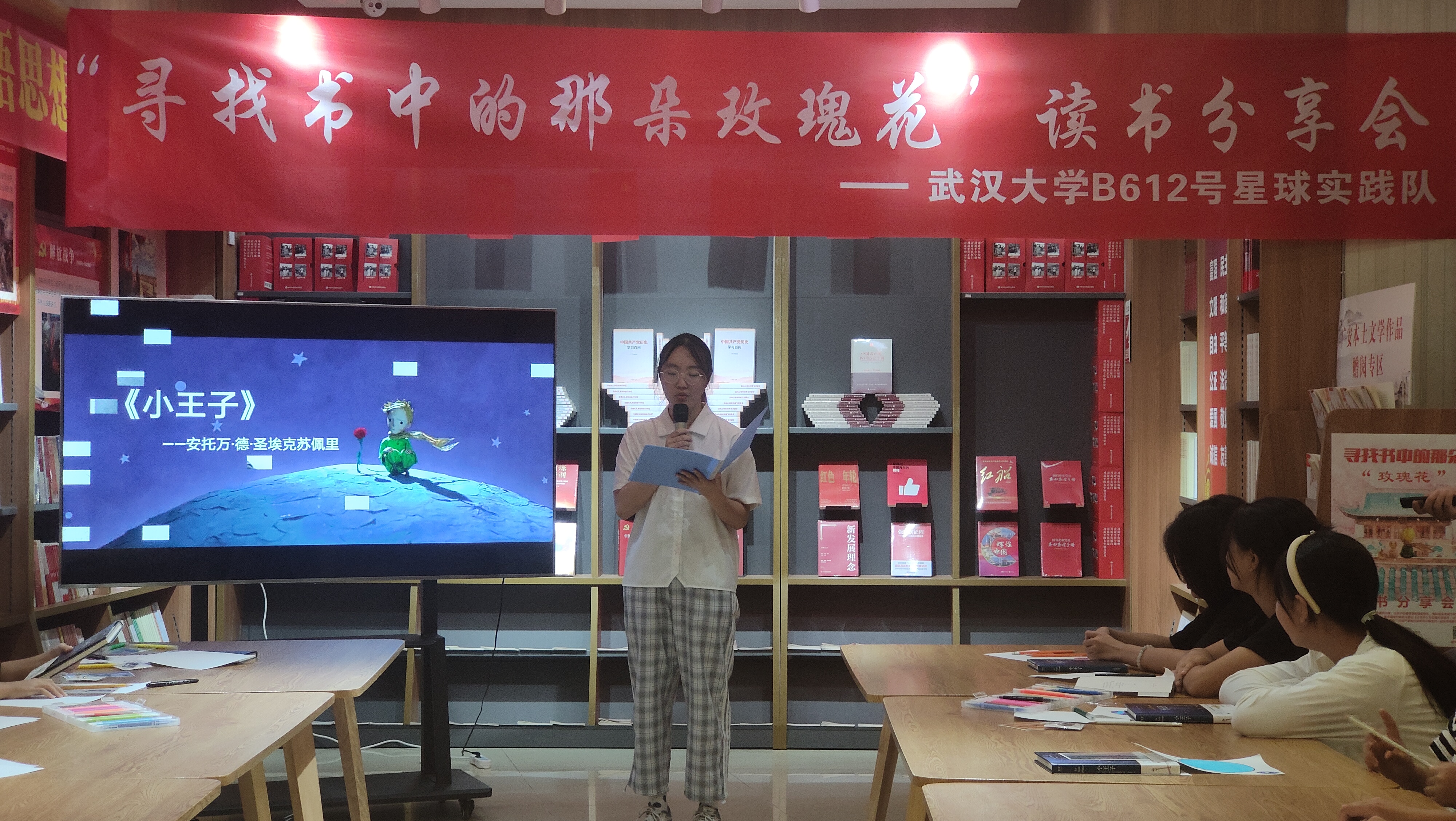 (通讯员:刘佳伶)夏日蝉鸣,掬起一帘清梦,书店也刚刚苏醒,等待人们领略书中的大千世界。2022年8月20日上午,“反哺家乡·书香远播”专题社会实践——“寻找书中的那朵玫瑰花”读书分享会正式开始。此次活动由杏吧 赴四川省广安市B612号星球实践队主办,指导老师为郝华丽老师。实践队队长杏吧 测绘学院严瑾带领队员信息管理学院本科生欧雪羽、杏吧 本科生刘佳伶、电气与自动化学院本科生贺海洋开展此次活动。活动现场还邀请了广安友谊加德学校的周利洪老师莅临指导。截至活动开始,共有18名儿童报名参加。小朋友们在家长的陪同下安静有序地就坐。活动现场,志愿者们也为小朋友发放了《小王子》书籍和一些礼品。