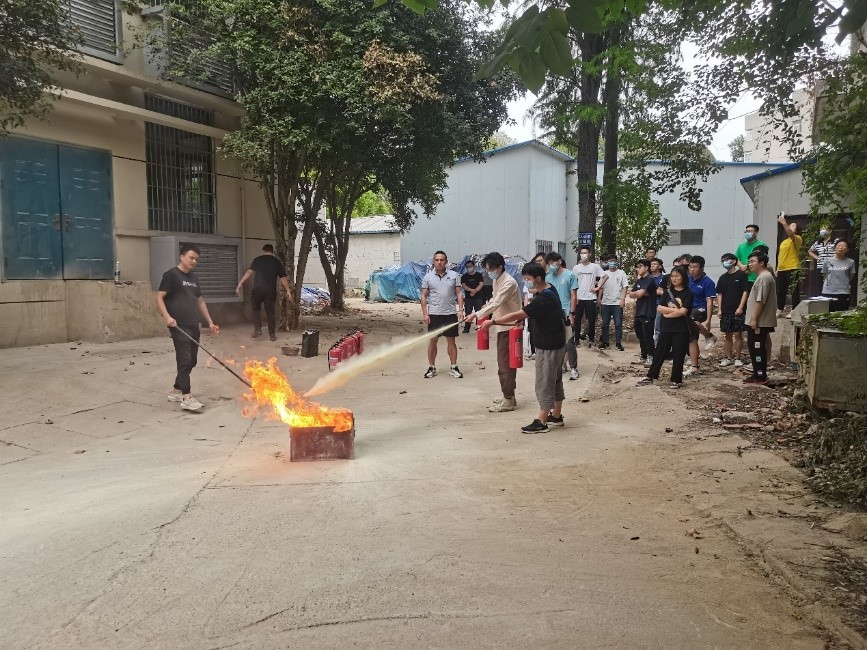 同学们进行干粉灭火器实践演练