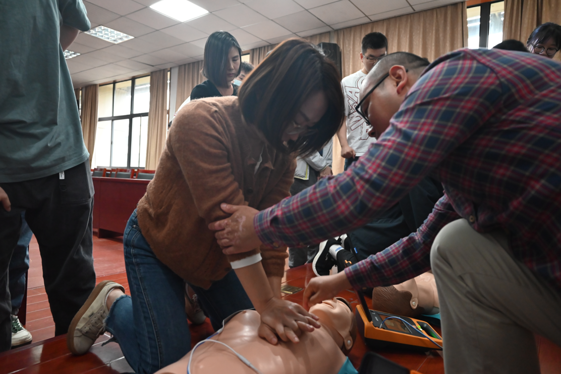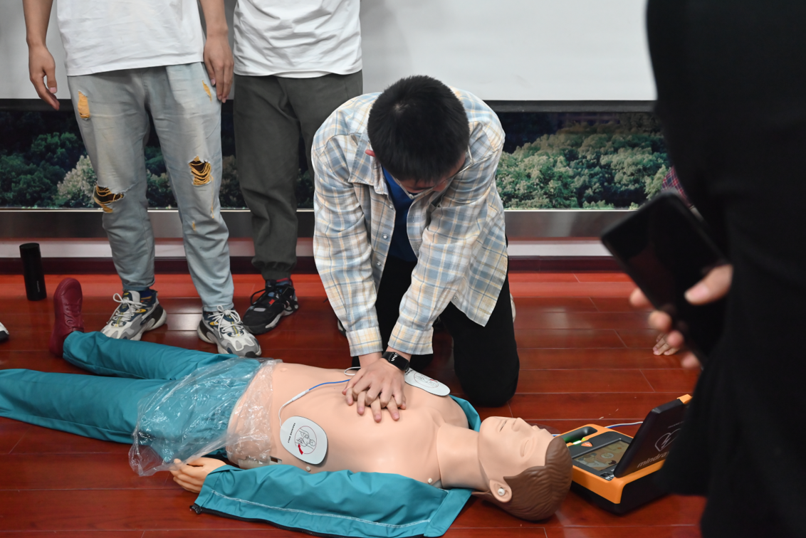 培训最后阶段,参会师生们在专家指导下积极参与实际操作,学习正确的心脏复苏步骤和使用AED。通过亲身实践,掌握关键技能,提升了应急反应能力。这次实操学习使师生们更加深入学习和掌握了AED使用方法,并在今后面对突发情况时能够更加从容应对、正确使用AED设备,在意外发生时正确处置、挽救生命。
