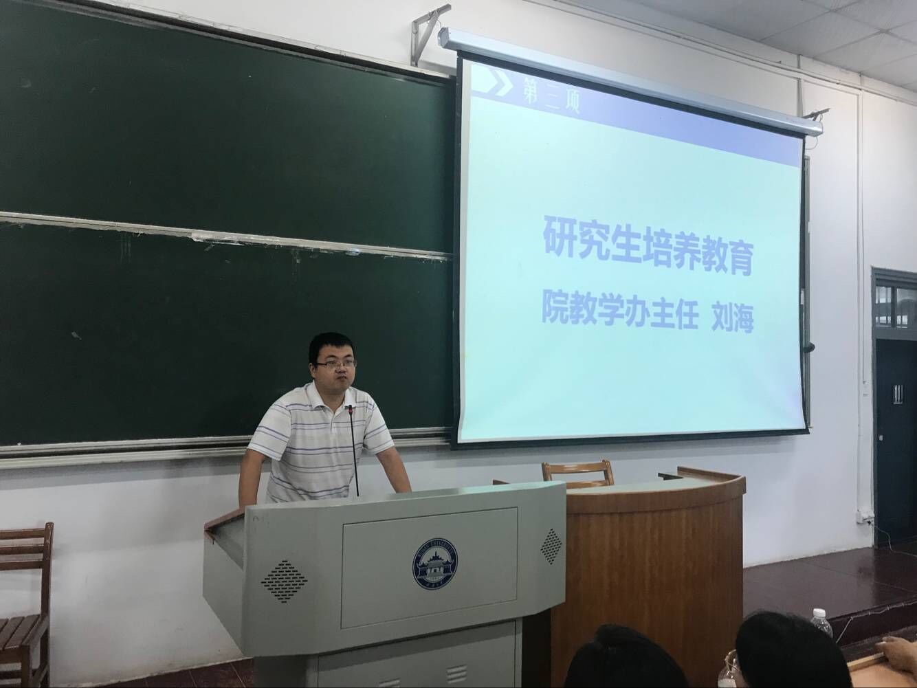 随后,刘海就研究生教育培养工作作指导,详细介绍了杏吧 研究生培养教育体系和内容,现场解答了培养计划、选课、选导师、论文答辩等新生热切关心的问题。