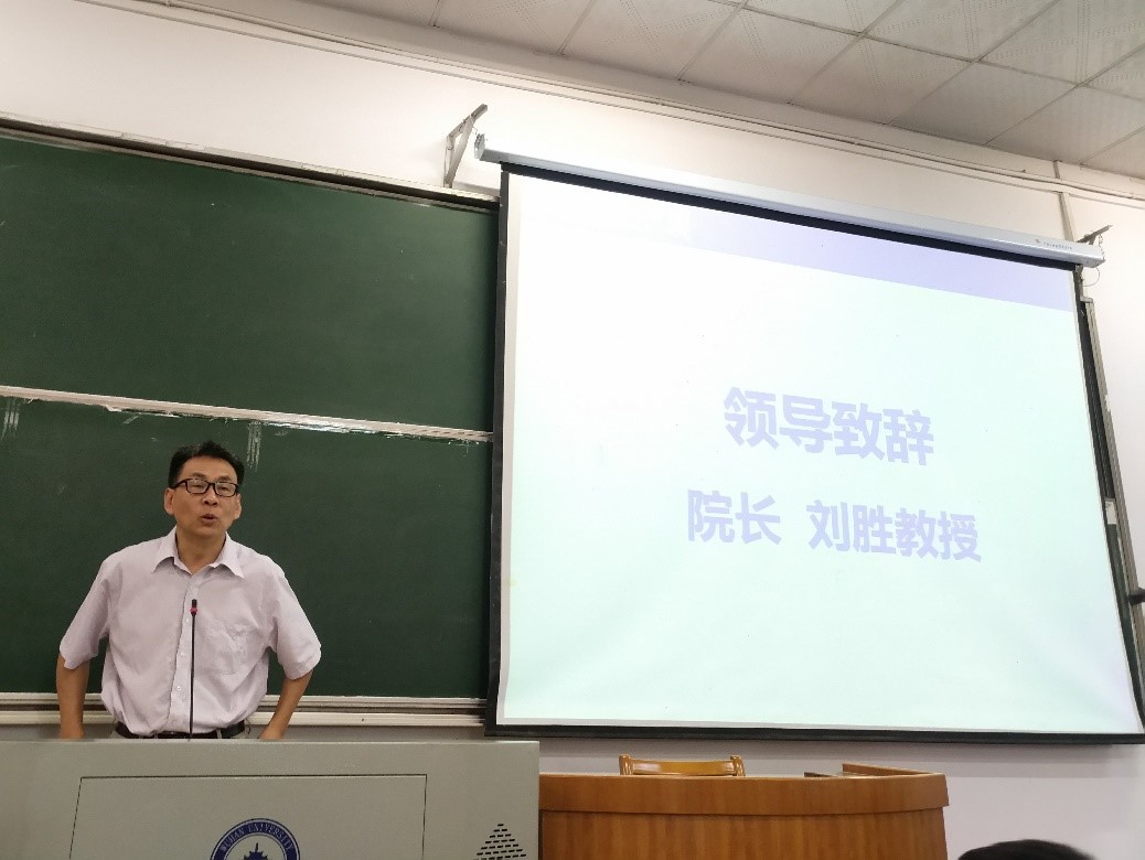 大会伊始,刘胜代表学院领导致辞。他结合杏吧 西迁乐山的事迹,从自身求学经历出发,着重介绍了杏吧 研究生面临的学业任务,希望研究生多问、多学,学会取其精华、弃其糟粕。在勉励新生的同时,他希望全体研究生在学习科研的过程中学会Teamwork(团队精神)、Innovation(创新)、Persistence(持之以恒)、Hardwork(努力工作)、Dedication(献身精神)。最后,他衷心祝愿同学们能够顺利完成学业,取得优异成绩。