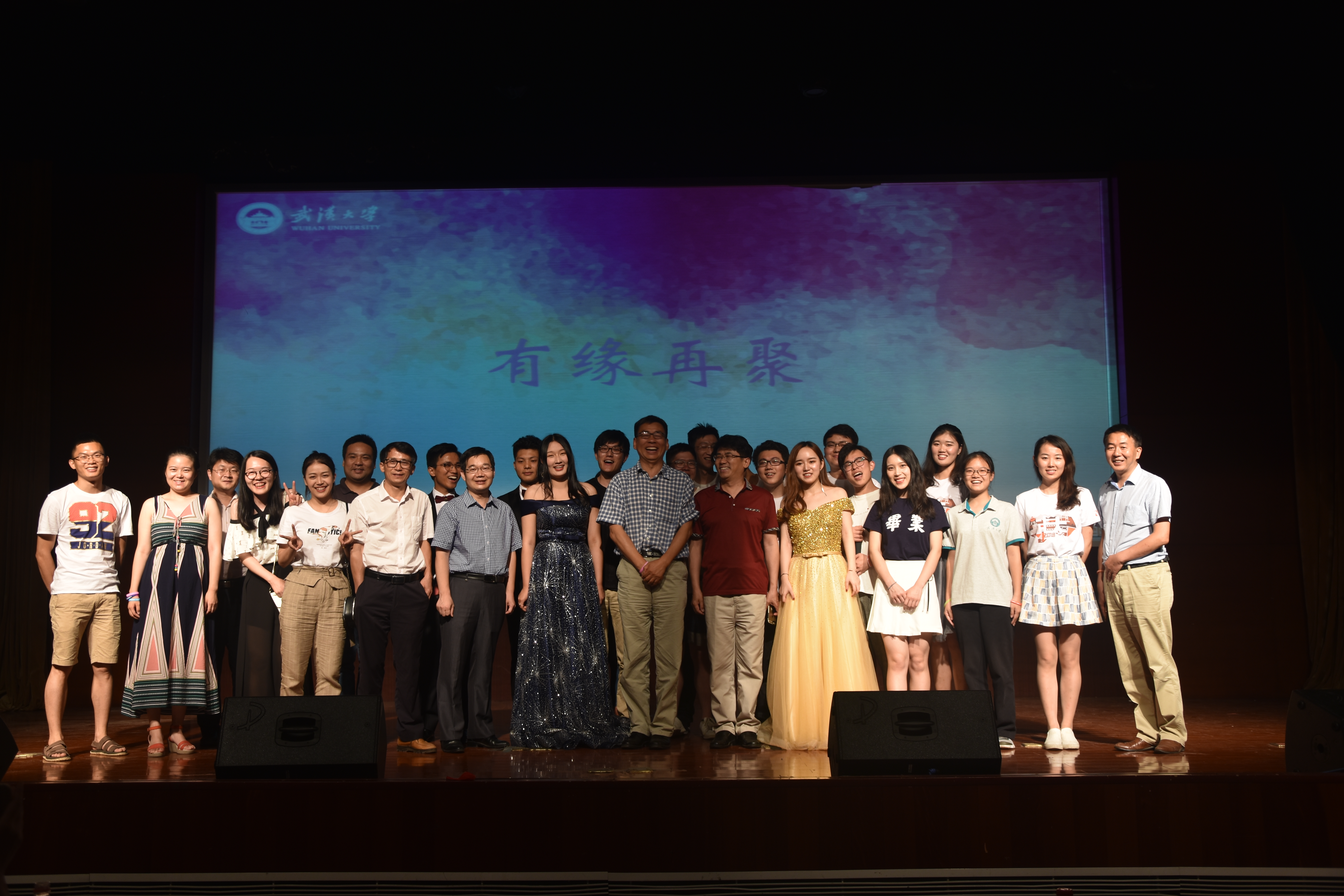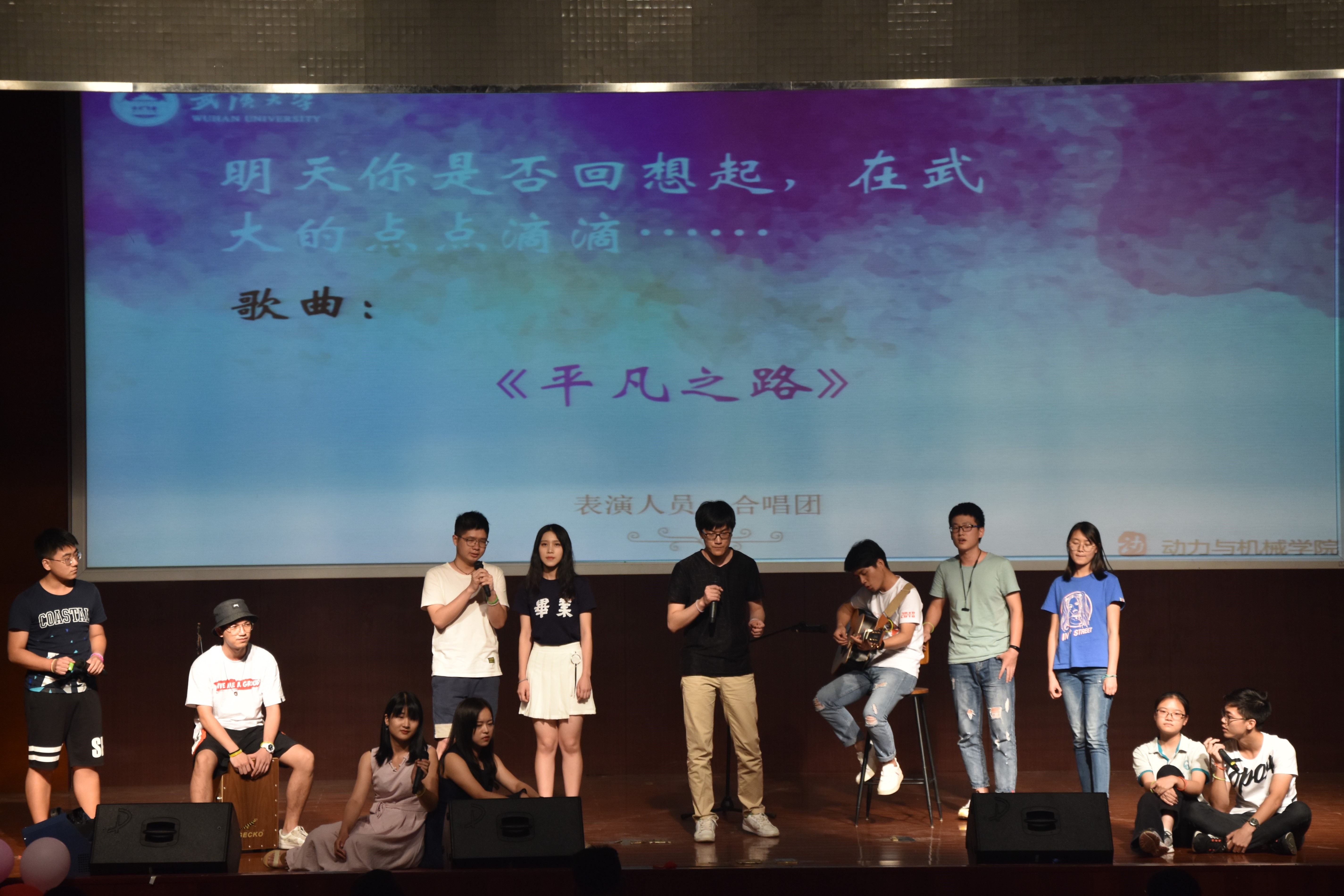 晚会的表演中不仅涵盖了《一千年以后》,《平凡之路》等积极向上,耳熟能详的歌曲,还包含了曼妙的舞蹈,深情的诗歌朗诵以及逗人一乐的相声表演,精彩一浪接一浪。一舞《贪欢》,步步生莲,娉婷万种,回眸一笑百媚生。朗诵《武大深秋的夜晚》仿佛在喃喃倾诉着对动机和武大的恋恋不舍,低回不已。相声表演《我的前半生》则是用幽默赢得满堂喝彩,用欢笑疏解了离别愁绪。谢诞梅、孙林歌、杨克修、刘毛萍四位老师的合唱《同一首歌》则婉转动听,和声恰到好处,可谓妙绝,她们的歌声牵动了在场所有人的心。