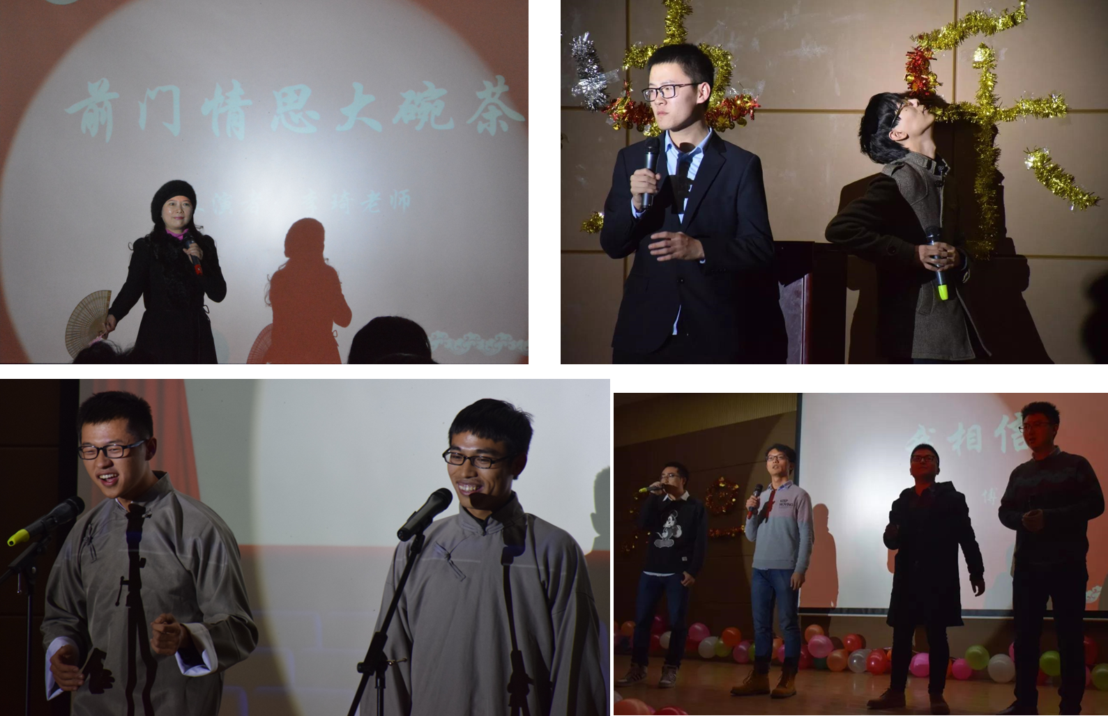 第二个篇章中,来自孙昊和周梵的小品《实验室的钥匙》讲述了两位相邻实验室因为互不认识而引起的一场让人哭笑不得的误会,也告诉大家要加强同学之间的交流;博士班的歌曲《我相信》让大家知道,工学部的博士不但长于科研,文艺表演上也是一把好手;马健、谢裕畴同学的相声《我要恋爱》以幽默的语言、夸张的表情讲述了工科男奇葩的恋爱历程;李书记的歌曲《前门情思大碗茶》韵味十足,动人的歌声融合了胡同文化的独特旋律,老北京的许多情景和画面都浮现在听众眼前。