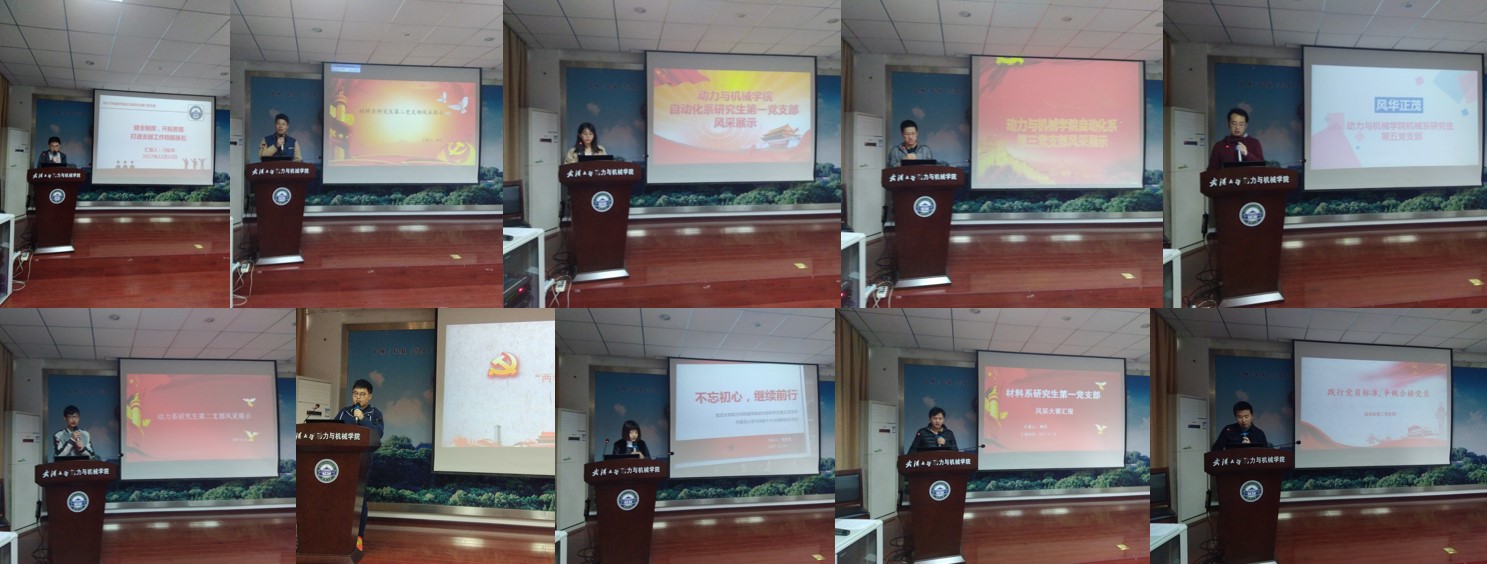 进入复赛的十个党支部分别是动力系第六党支部,材料系第二党支部,自动化系第一党支部,自动化系第三党支部,机械系第五党支部,动力系第二党支部,机械系第四党支部,动力系第五党支部,材料系第一党支部,自动化系第二党支部。随着党总支青年委员赵丹丹讲话结束,比赛开始,每个支部依次以PPT的形式展示了自己支部的风采,各个支部各具特色,有的党建严格,工作严谨;有的活动丰富,精彩纷呈,有的工作创新,别具一格。