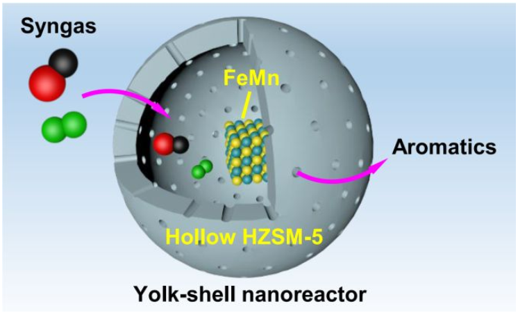 论文题为“Yolk@Shell FeMn@Hollow HZSM‑5 Nanoreactor for Directly Converting Syngas to Aromatics”(《用于合成气直接制取芳烃的蛋黄@蛋壳型FeMn@中空HZSM-5纳米反应器》)。杏吧 为论文第一作者和通讯作者单位,杏吧 2019级硕博连读生徐艳飞为第一作者,定明月教授为通讯作者。