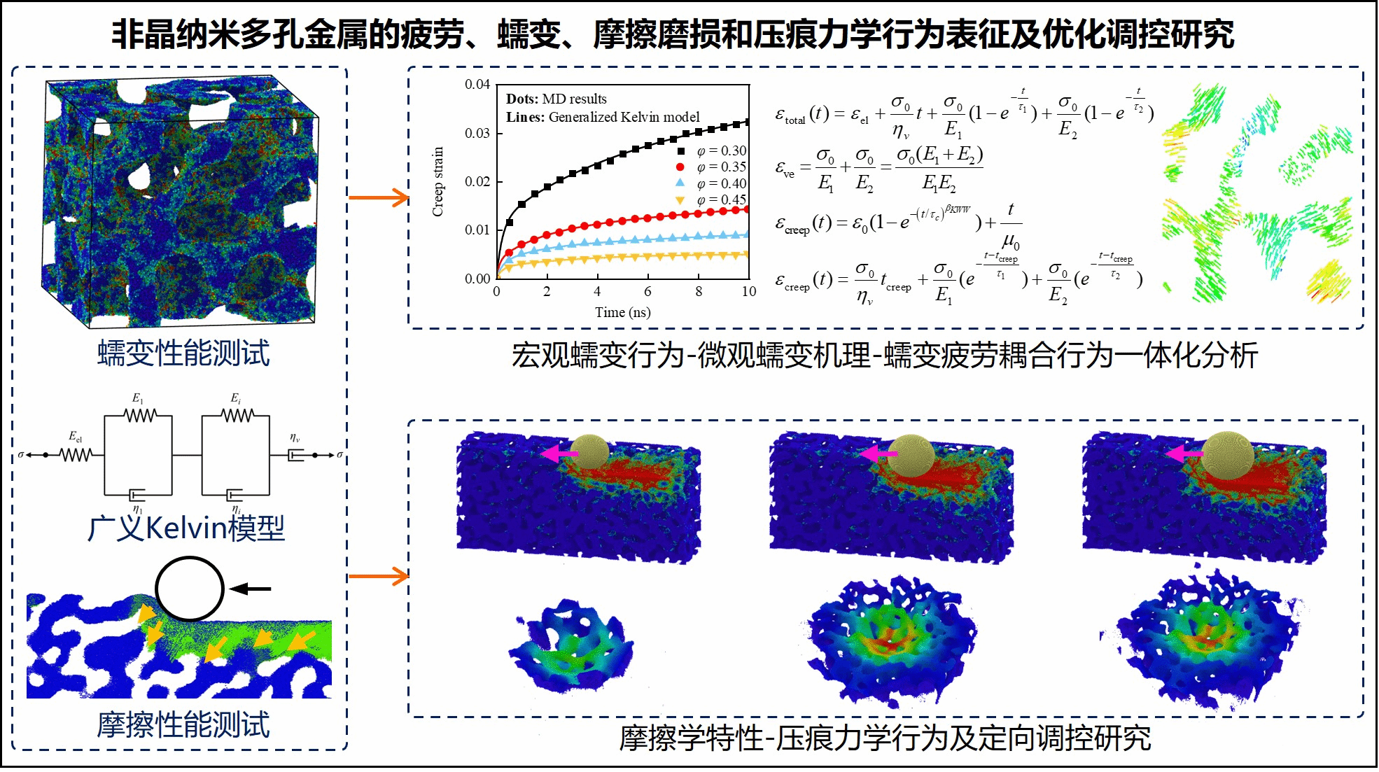 图1:新型纳米多孔非晶金属的疲劳、蠕变、摩擦磨损和压痕特性研究