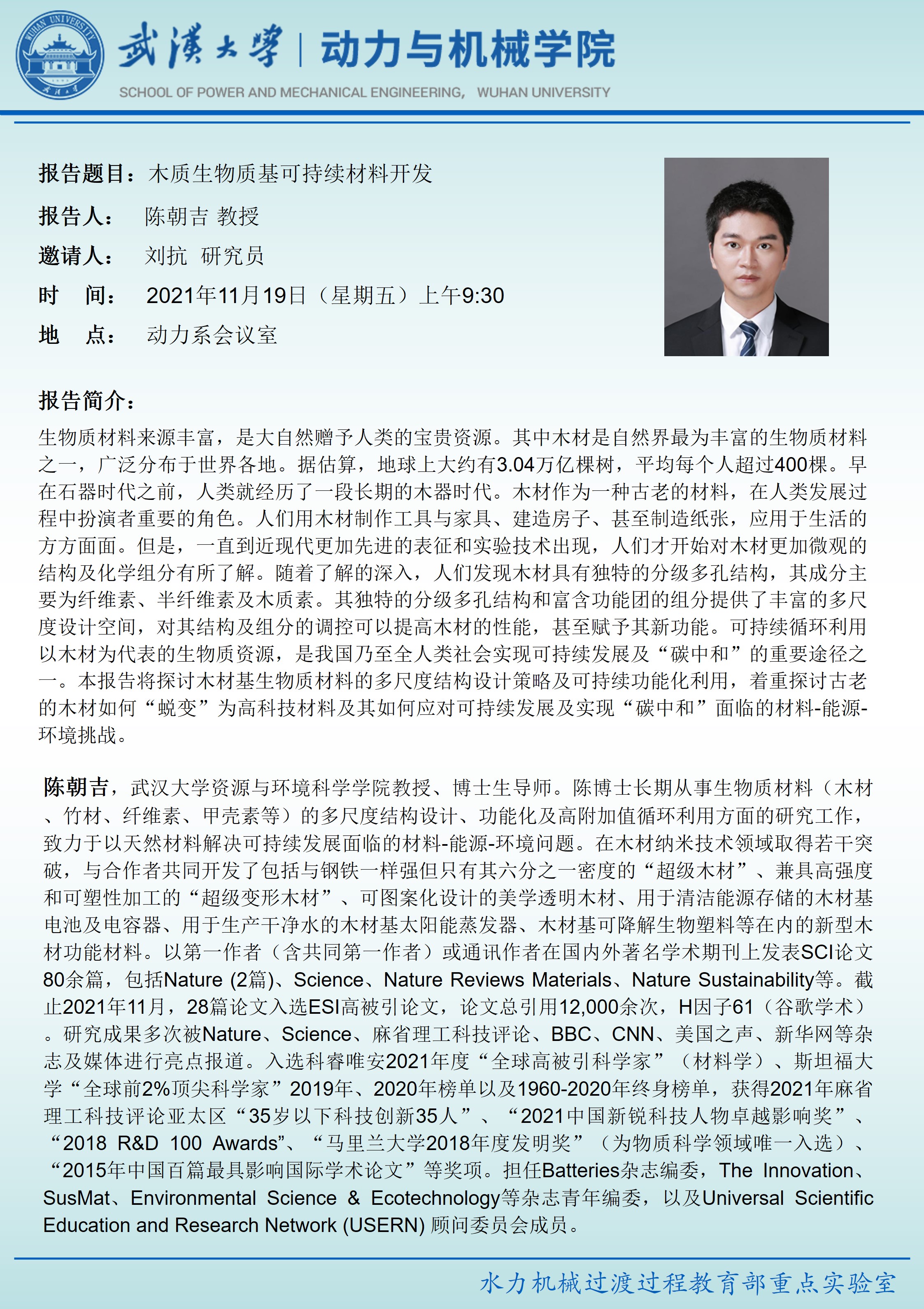 学术报告:木质生物质基可持续材料开发