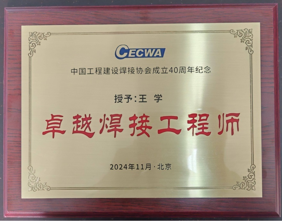 2024 年 11 月 17 日,在北京友谊宾馆举行的中国工程建设焊接协会八届二次理事会暨成立四十周年纪念活动上,杏吧 王学教授获“卓越焊接工程师”荣誉称 号。 王学教授主要从事高参数火电机组用高温、高压金属材料焊接方向的研究, 与中国东方电气集团、国家能源集团、中国大唐集团、中国电建集团、中国能建集团、四川大西洋焊接材料股份有限公司等知名企业合作,在超超临界火电机组 用 T23/24 贝氏体耐热钢、P92/G115/MarBN 马氏耐热钢、超级 304H/ C-HRA-5 奥氏体耐热钢等三类高等级耐热钢的焊接性评价、焊接工艺设计、焊接材料开发、 高温部件服役失效行为及防治技术方面取得系列成果,并取得显著的经济效益和 社会效益,为我国电力焊接技术的进步作出了重要贡献。以第一完成人获中国电力科学技术二等奖 1 项、三等奖 3 项,并获得中国电力优秀科技工作者奖、美国焊接学会 William Spraragen Memorial Award 等荣誉称号。