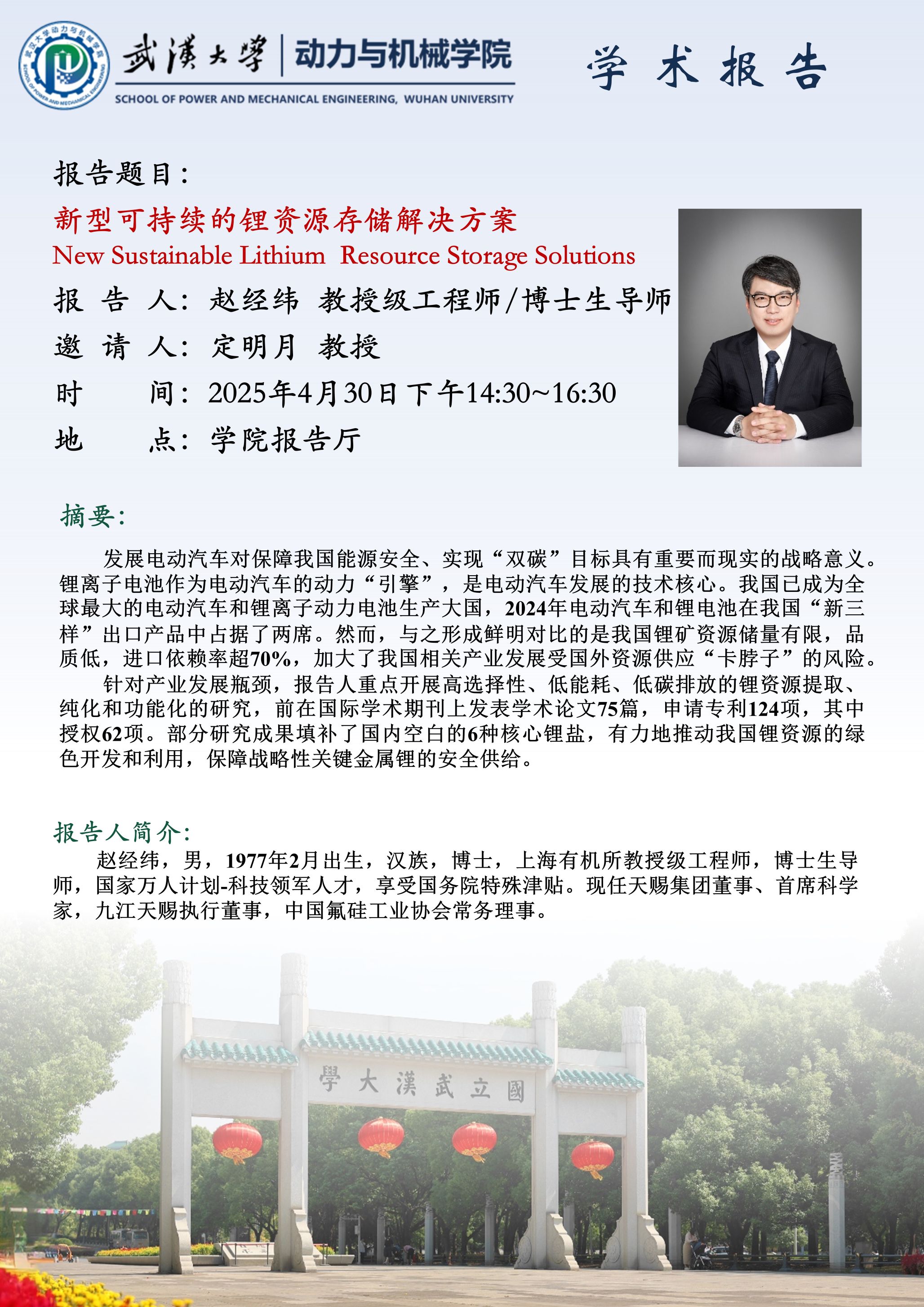 学术报告:新型可持续的锂资源存储解决方案