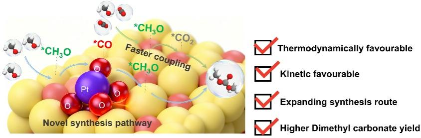 随着工业化进程不断深入,大气中CO2等温室气体浓度持续攀升,引发一系列严峻环境挑战。在此背景下,将CO2催化转化为高附加值化学品,正是衔接“绿色化工”与“双碳”目标的重要桥梁。其中,以CO2和甲醇为原料直接合成碳酸二甲酯,不仅可协同转化温室气体与煤基下游产物甲醇,更具有环境友好、原子经济性高和过程安全等突出优势,展现出巨大的学术价值与工业潜力。然而,该技术受限于热力学非自发过程的限制和甲醇与CO2难偶联的高动力学壁垒,碳酸二甲酯产率不足1%。然而,现有策略难以突破这些瓶颈,亟需开发新型催化体系以克服热力学与动力学的双重挑战,实现高产率碳酸二甲酯合成。