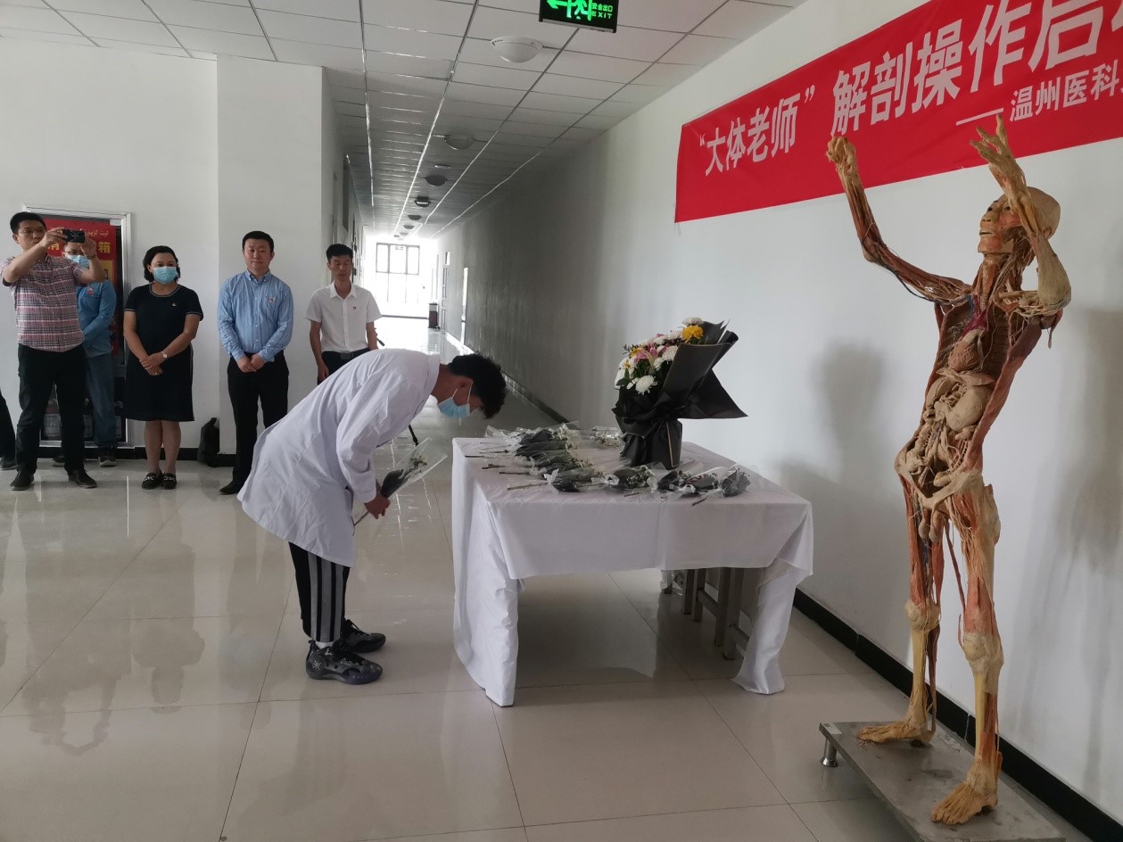 党总支刘萍书记指出,解剖学是医学生接触的第一门专业基础课,是一堂以死亡为开始的生命教育,也是初识生命构造的起点。大体老师是唯一一个死亡后获得的职业,他的高尚无法用语言或者是文字去表达。它的庄严无法用词汇或者其他去修饰。