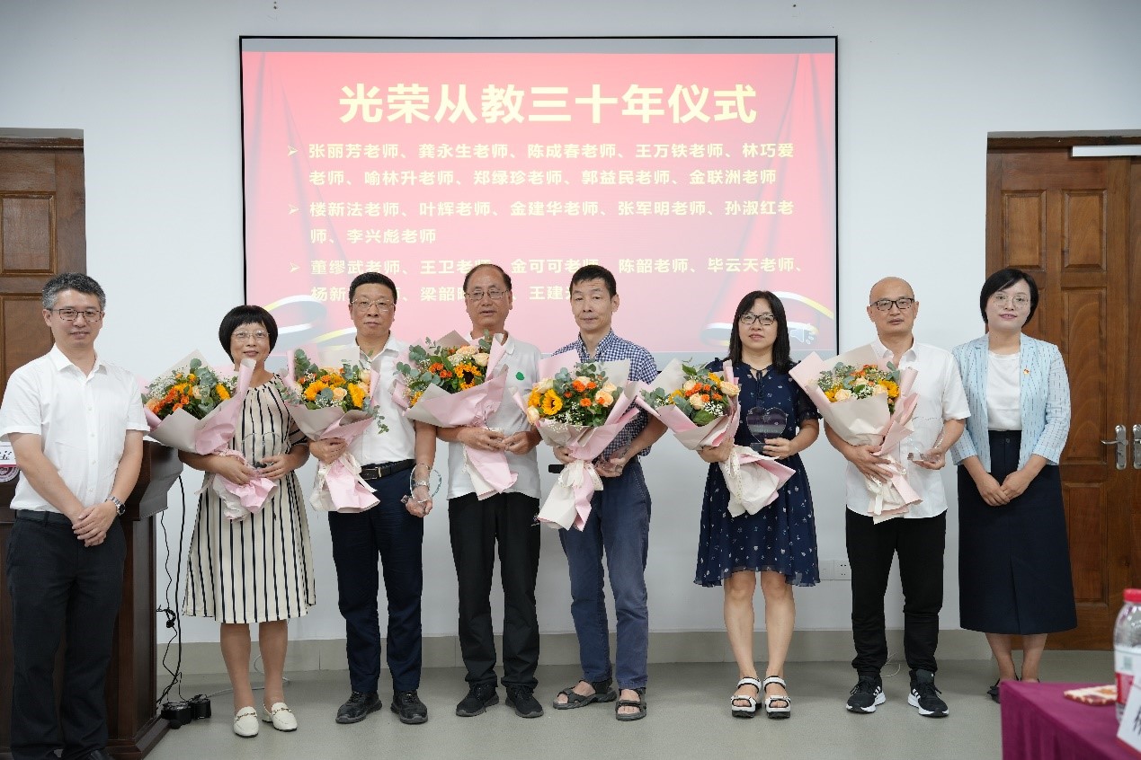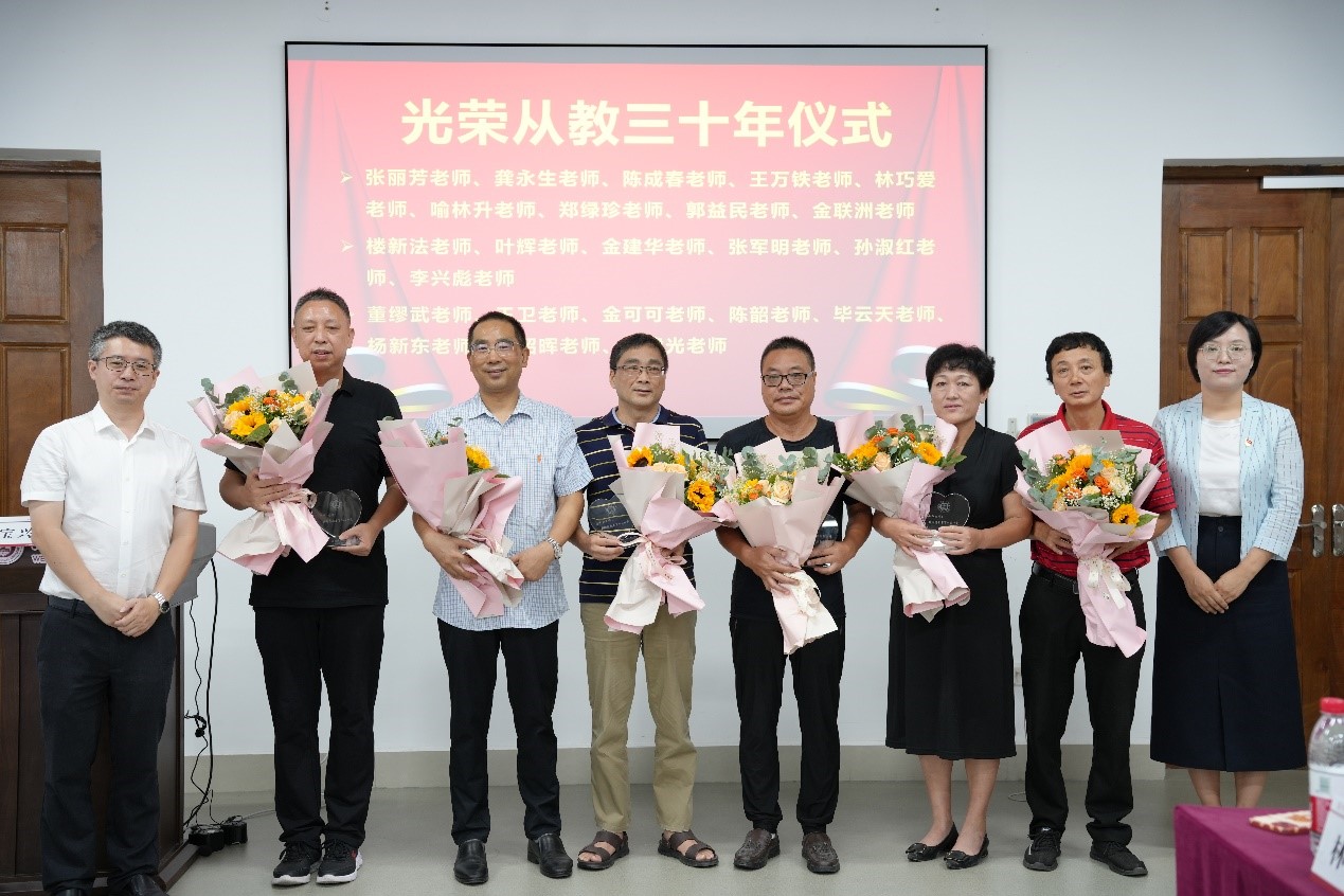 会上举行光荣从教三十年仪式,致敬三十年如一日默默坚守在教育教学岗位奉献青春岁月和智慧财富的基础人。回首三十多年的岁月,老教师们深情分享了自身的成长阅历、工作经验和人生感悟,大家深受感动。