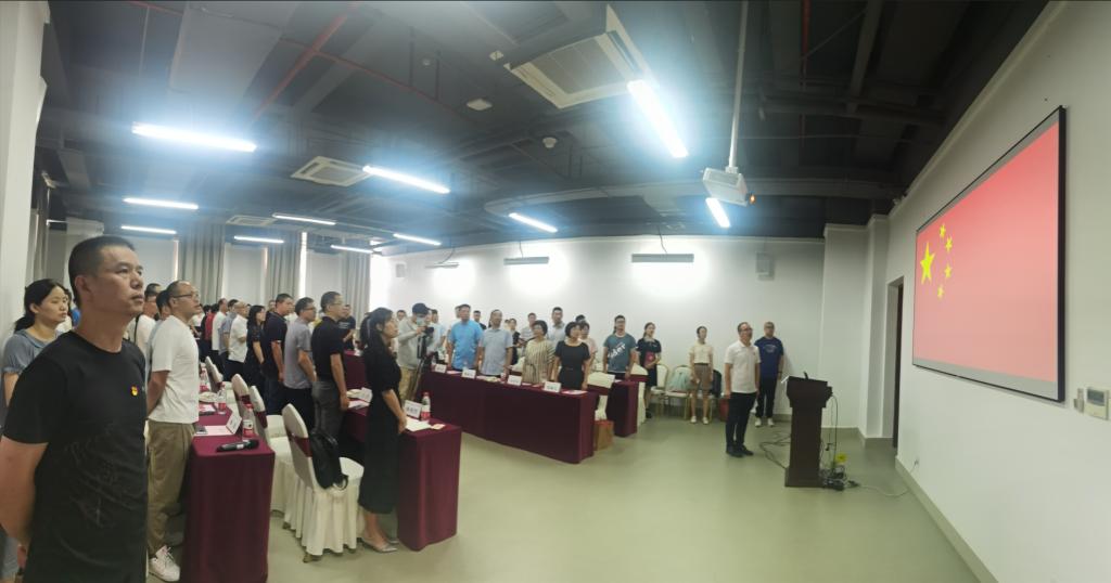 全体与会教职工起立齐唱国歌。