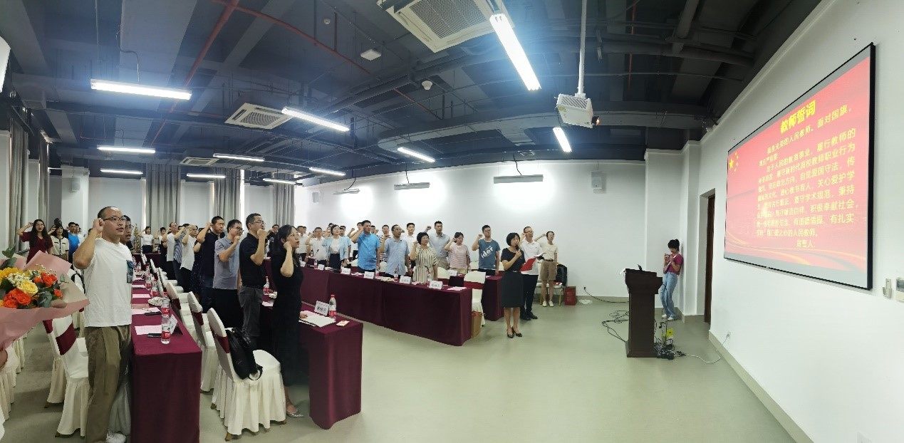 全体与会教职工在张丽芳老师的带领下,重温教师誓词,更加坚定了“不忘初心,牢记使命”的责任与担当,肩负起时代赋予的光荣使命。