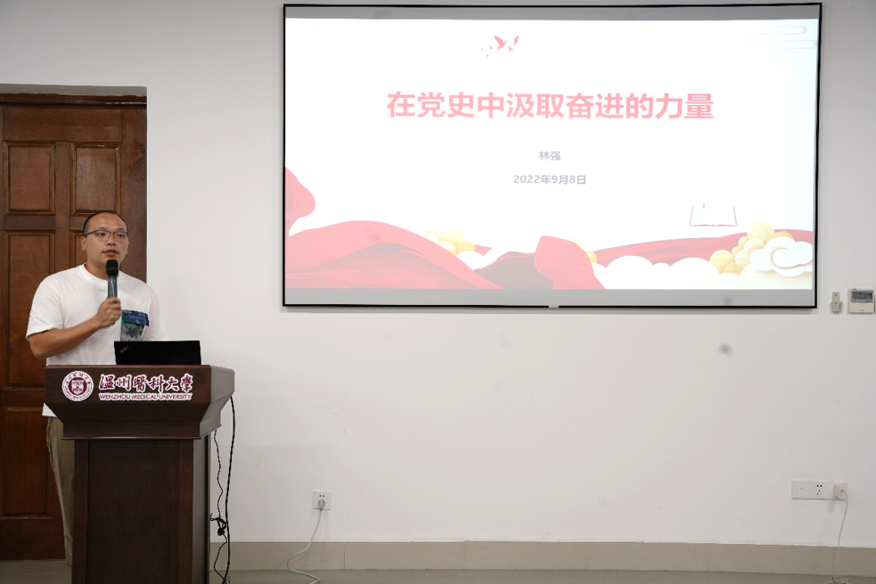 会上举行青椒成长营入营仪式。青年党员教师林强分享了今年暑假参加学校组织的贵州遵义党性锤炼的学习经历和心得体会。