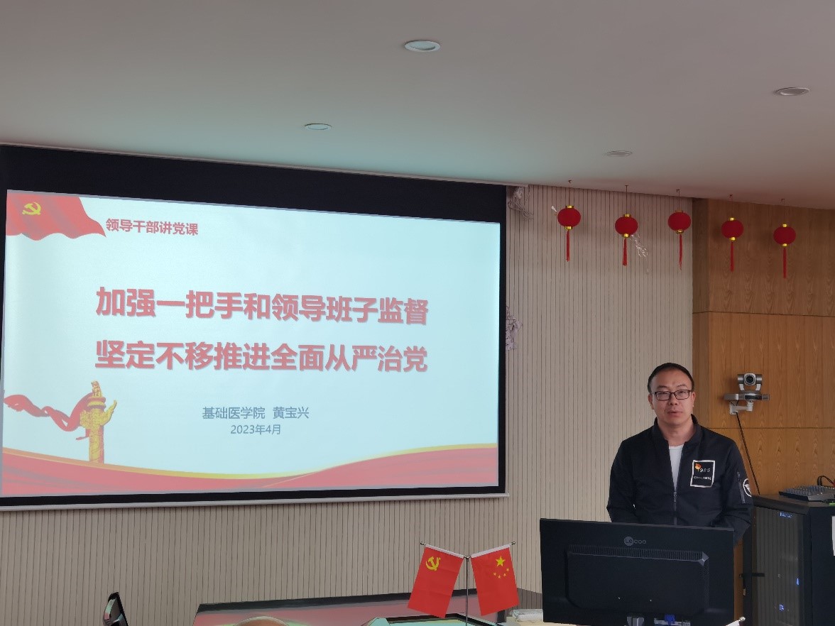 党委副书记、纪委书记黄宝兴以《加强对一把手和领导班子监督,坚定不移推进全面从严治党》为题讲党课,深入学习贯彻习近平总书记关于全面从严治党的重要论述,突出加强对“关键少数”特别是“一把手”和领导班子的监督。