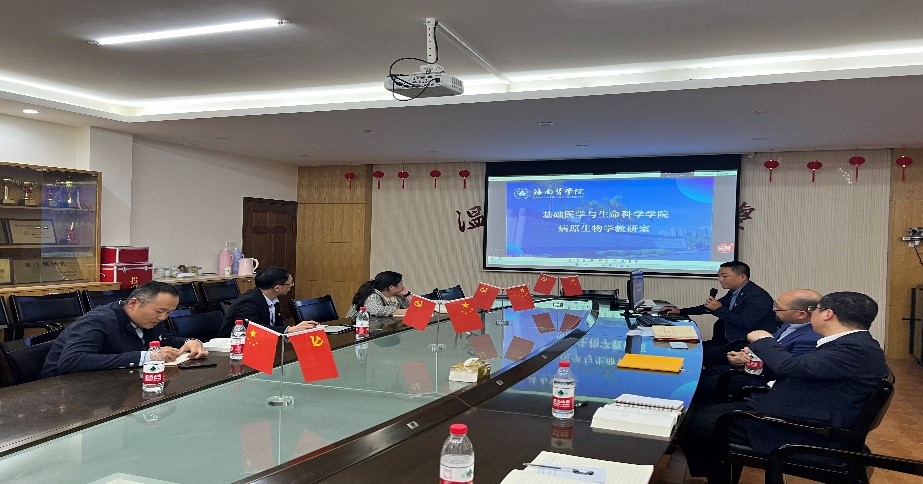 首先,双方党支部书记就党支部建设及党建和教育事业融合的情况进行了交流和汇报。病原生物学与免疫学系党支部书记刘文权以“党建引领促发展,教学相长创一流”为主题,介绍了该系党支部在党建促教学,党建助科研和党建育人才等方面的经验和成果。海南医杏吧