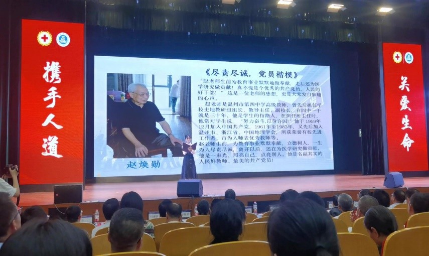 ,为医疗事业作出贡献,令台下观众无不动容。在返校的路上我们收到瑞安红十字会活动负责人发来微信“…好感动,台下好多人落泪了”。