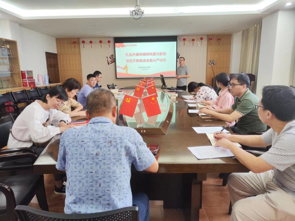 黄宝兴作《扎实开展师德师风警示教育 坚定不移推进全面从严治党》的专题党课。黄宝兴带领大家回顾党的光荣历史,重温二十大报告重要内容,并通过一个个真实的案例进行师德师风警示专题教育,强调要时刻注意规范自身言行,以身作则,立德树人。