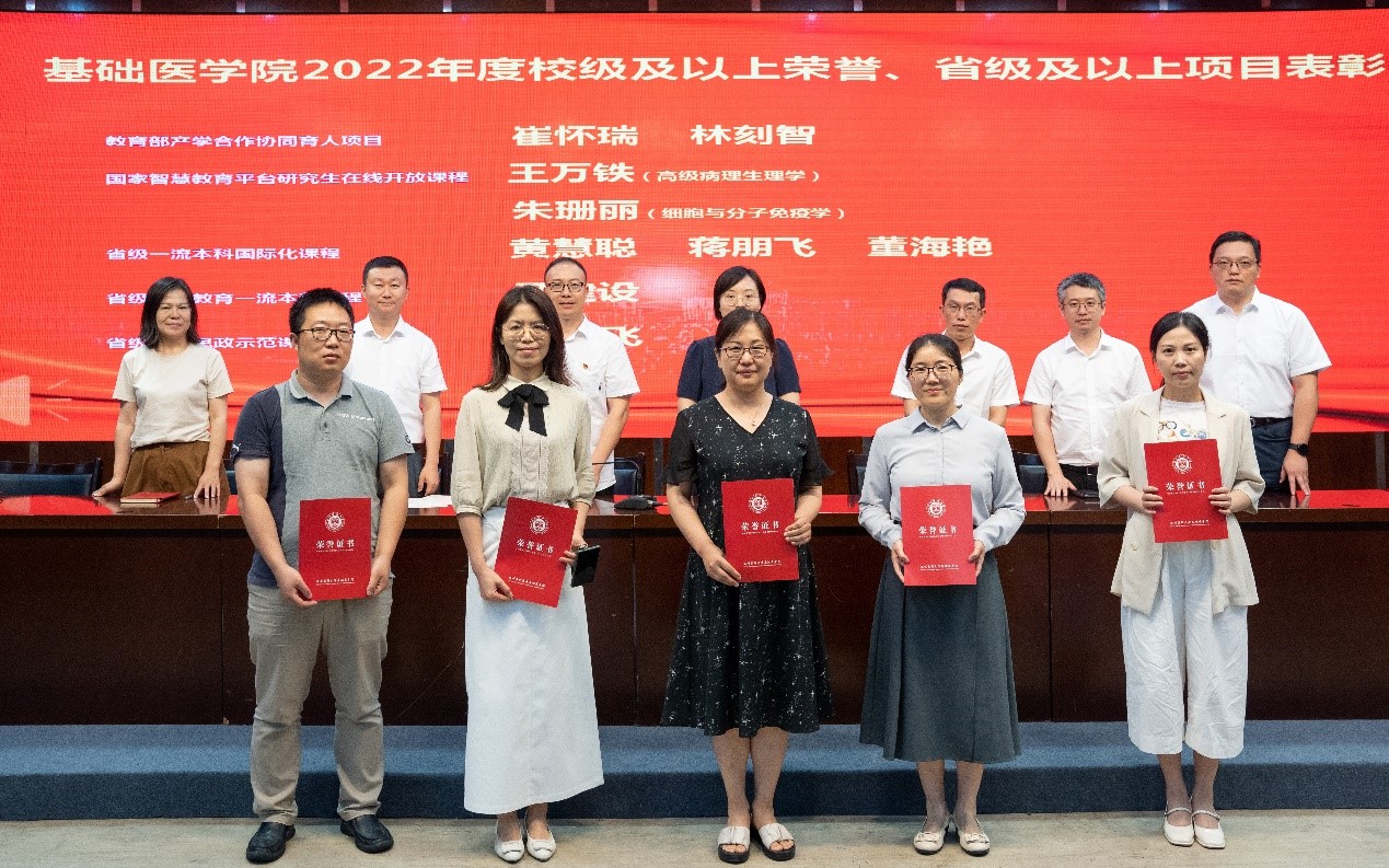 会议对2022年度获校级以上荣誉和省部级以上项目的教师进行了表彰。