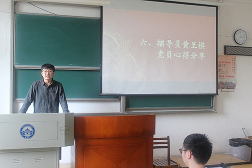 活动第五部分,辅导员黄呈棋和大家分享了一些党员心得。我们跟能感受到身为一名共产党员的自豪感和责任感。最后,在主持人戴俊涛的带领下,全体同学起立,握拳起誓重温入团誓词,一起再次感受当时自己澎湃的内心。在洪亮又慷慨激昂的誓词声中,此次团日活动完整地落下了帷幕。