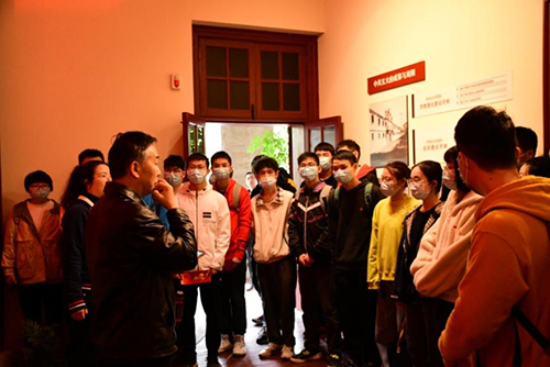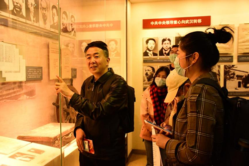 全体同学驻足中共五大会址展厅,在这里汪思明为同学们实地讲授党的理论先进性以及胜利的来之不易。