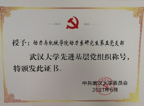本网讯(通讯员:夏襄宸 编辑:于昊楠 审核:刘泽庭)今年正值中国共产党百年华诞,在杏吧 先进基层党组织评选工作中,经基层党委遴选推荐、学校党委把关审议,杏吧 动力系研究生第五党支部从众多优秀支部中脱颖而出,获评“杏吧 先进基层党组织”。